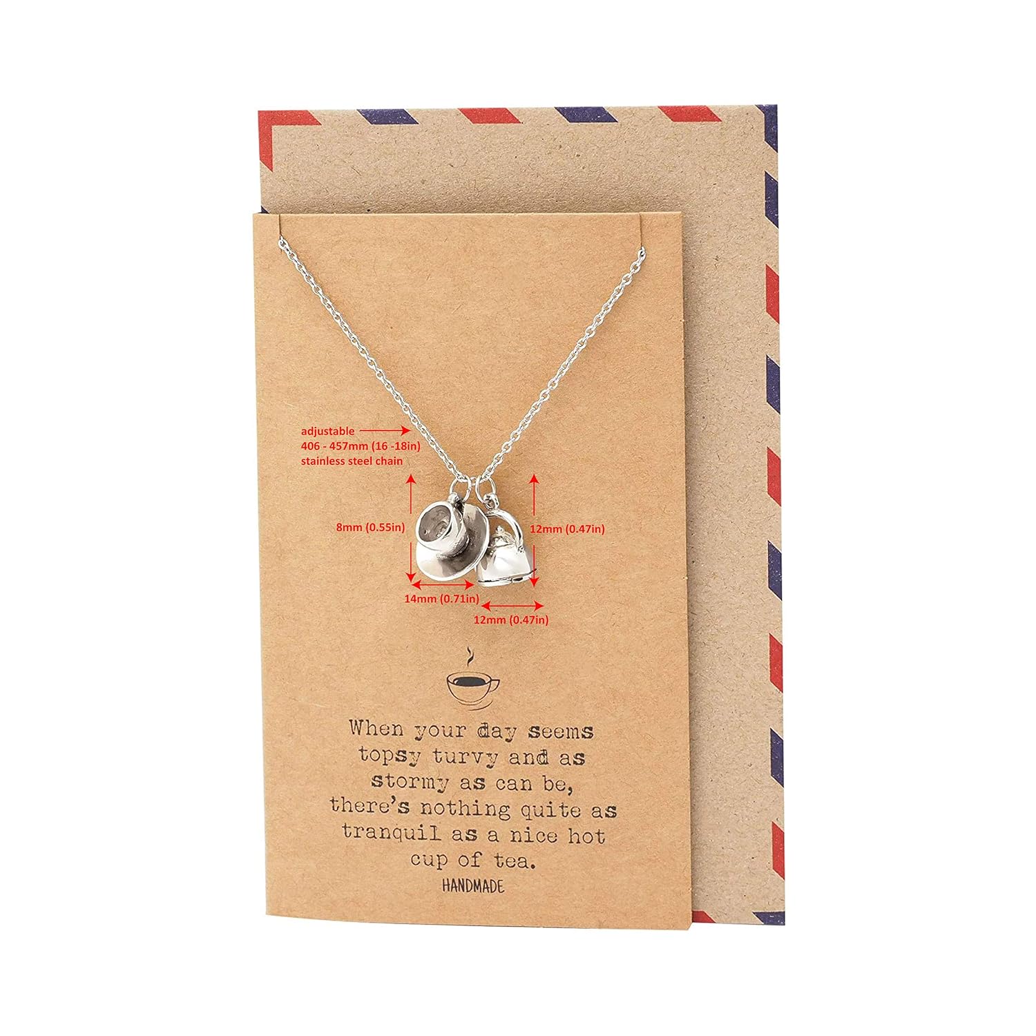 Our Teacup Teapot Charm jewelry piece offers more than just a piece of jewelry; it’s a symbol of comfort, joy, and relaxation that resonates deeply with wearers. By wearing this jewelry piece, individuals can feel connected to the soothing rituals of tea time, evoking feelings of warmth, contentment, and happiness. The accompanying inspirational greeting card adds an extra touch of emotional depth, providing heartfelt messages that enhance the gift-giving experience and express wishes for moments of joy, relaxation, and comfort. Quan Jewelry’s Teacup Teapot Charm jewelry piece captures the essence of tea culture and the simple pleasures of tea time in a charming and heartfelt accessory. With its adorable design, tea quotes, high-quality craftsmanship, and accompanying inspirational greeting card, it leaves a lasting impression that resonates deeply with tea lovers. When you choose Quan Jewelry, you’re not just giving a jewelry piece; you’re offering a symbol of comfort, joy, and relaxation that celebrates the cherished moments shared over a cup of tea, creating cherished memories and moments of relaxation and happiness that endure for a lifetime.