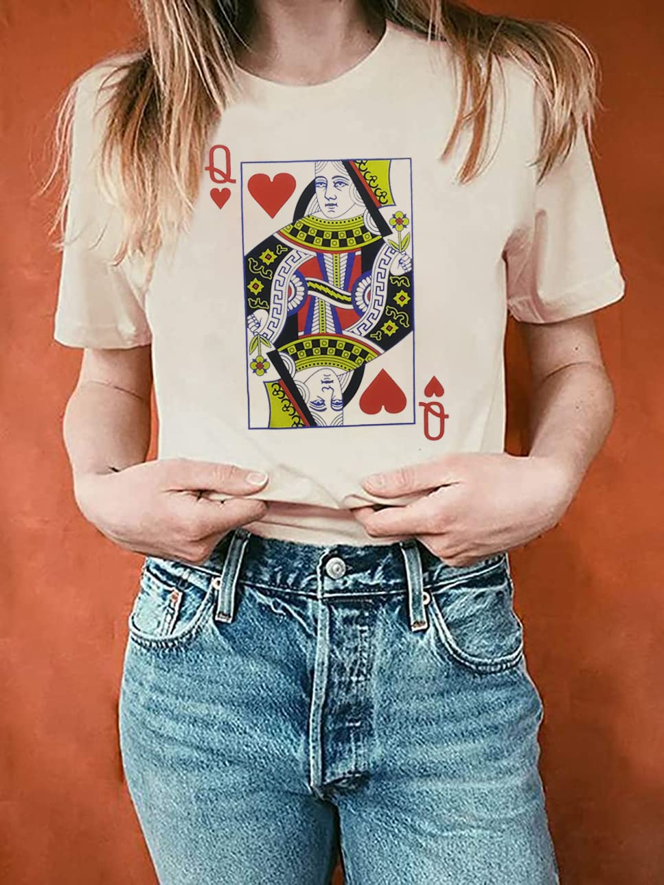 Queen of Hearts Graphic Tee Shirts for Women Retro Vintage Queen T Shirt Summer Short Sleeve Crew Neck Shirt Tops