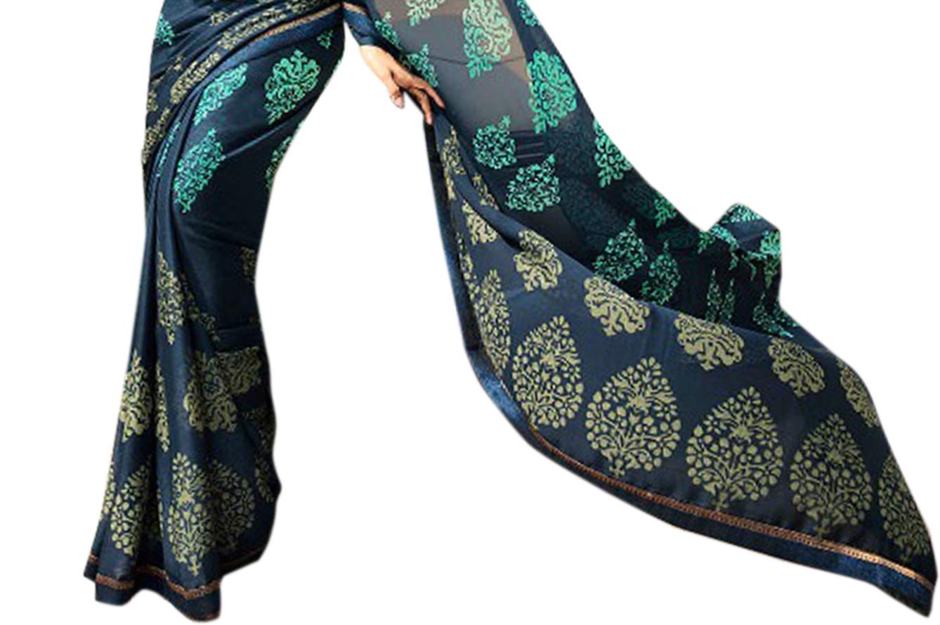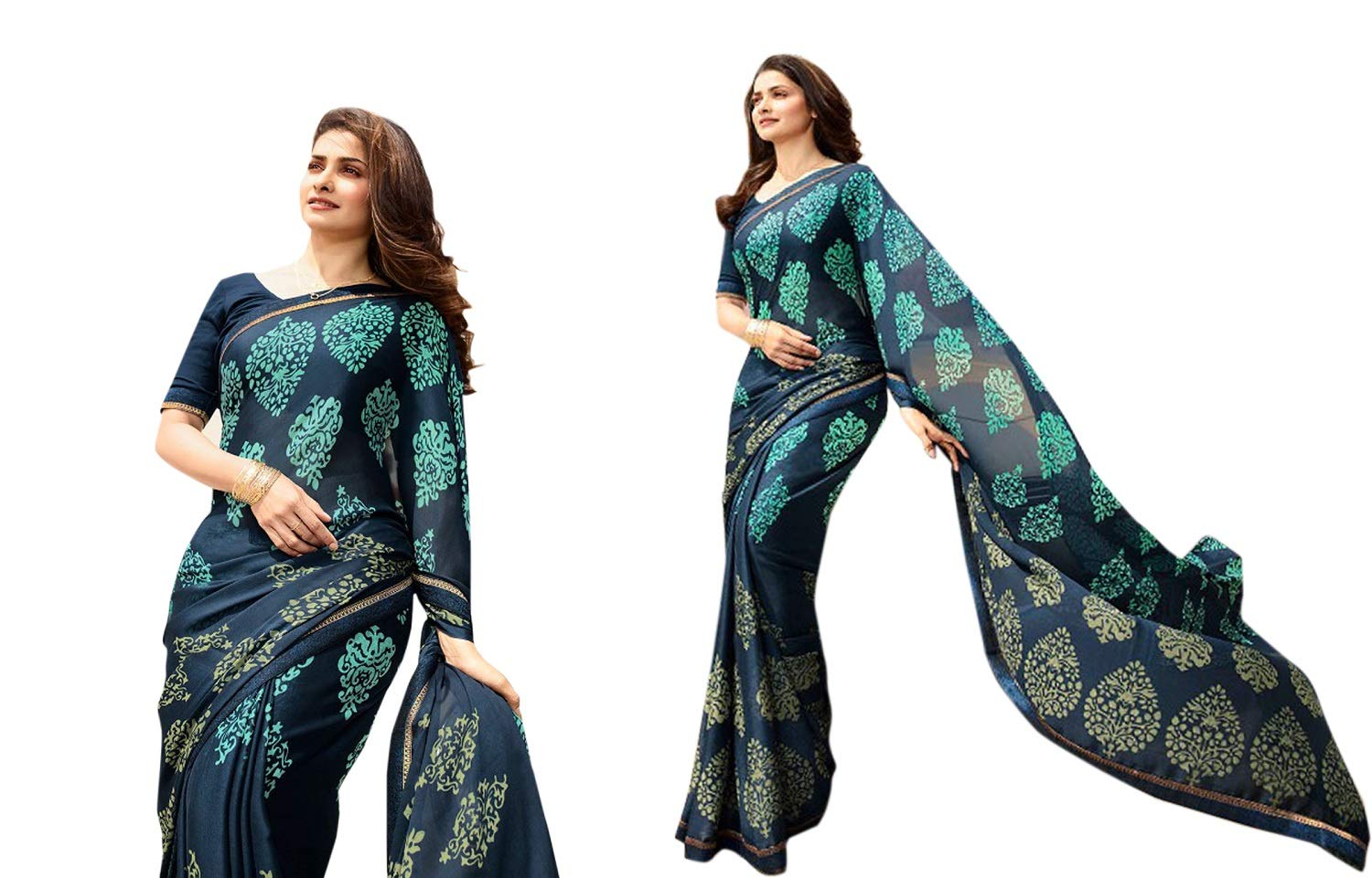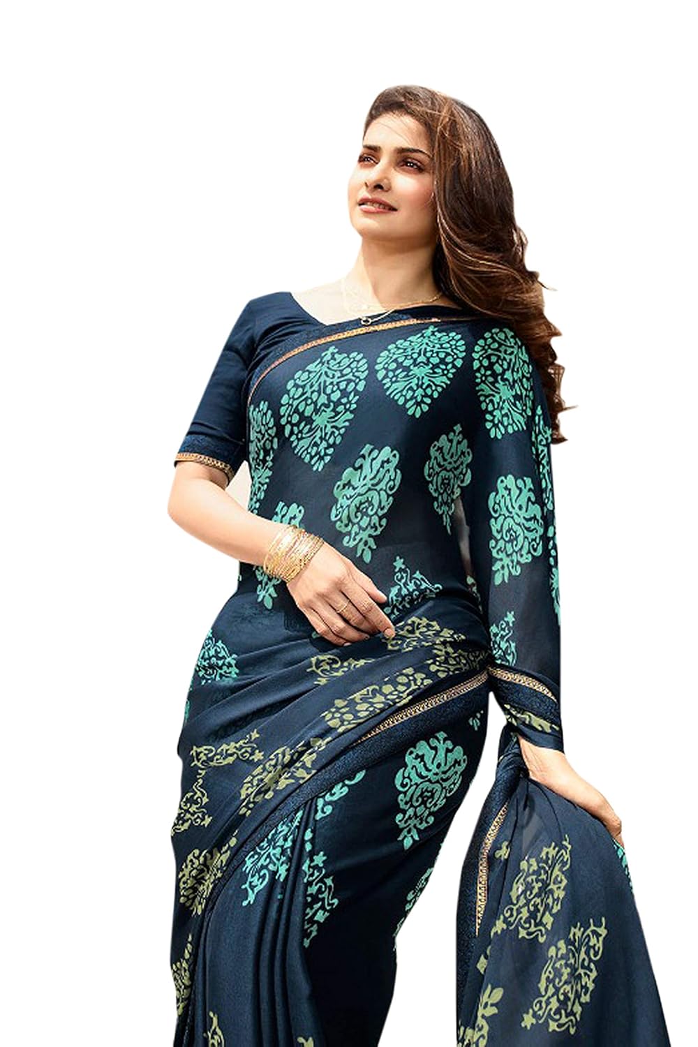 RAJESHWAR FASHION WITH RF Women’s Rangoli Vishitra Silk Printed Saree Printed Lace Border and Piece (A36 BLUE, Multicolour, 6.30 Mtr)