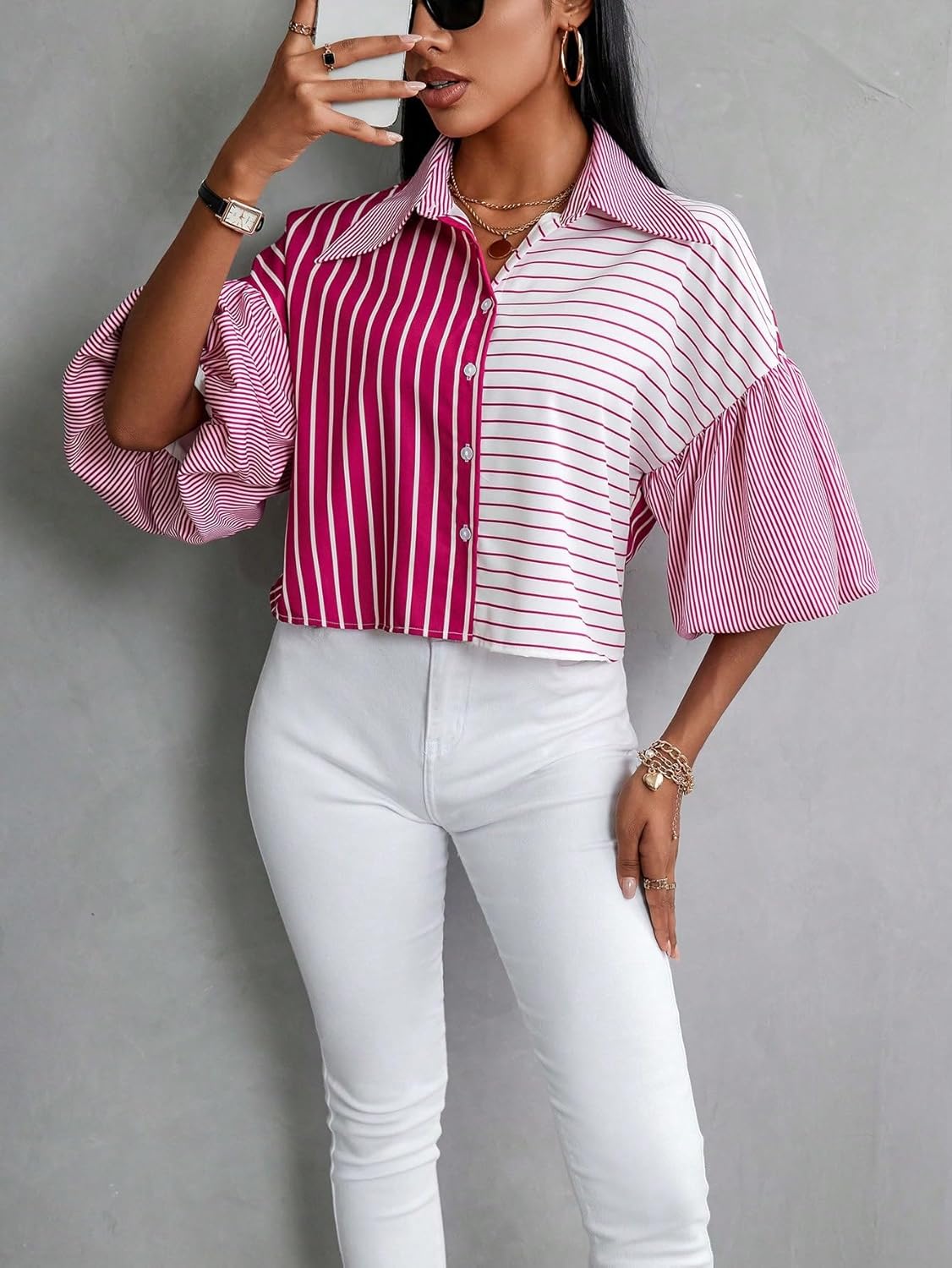 Item model number : Women’s Fashion Striped Crop Shirt