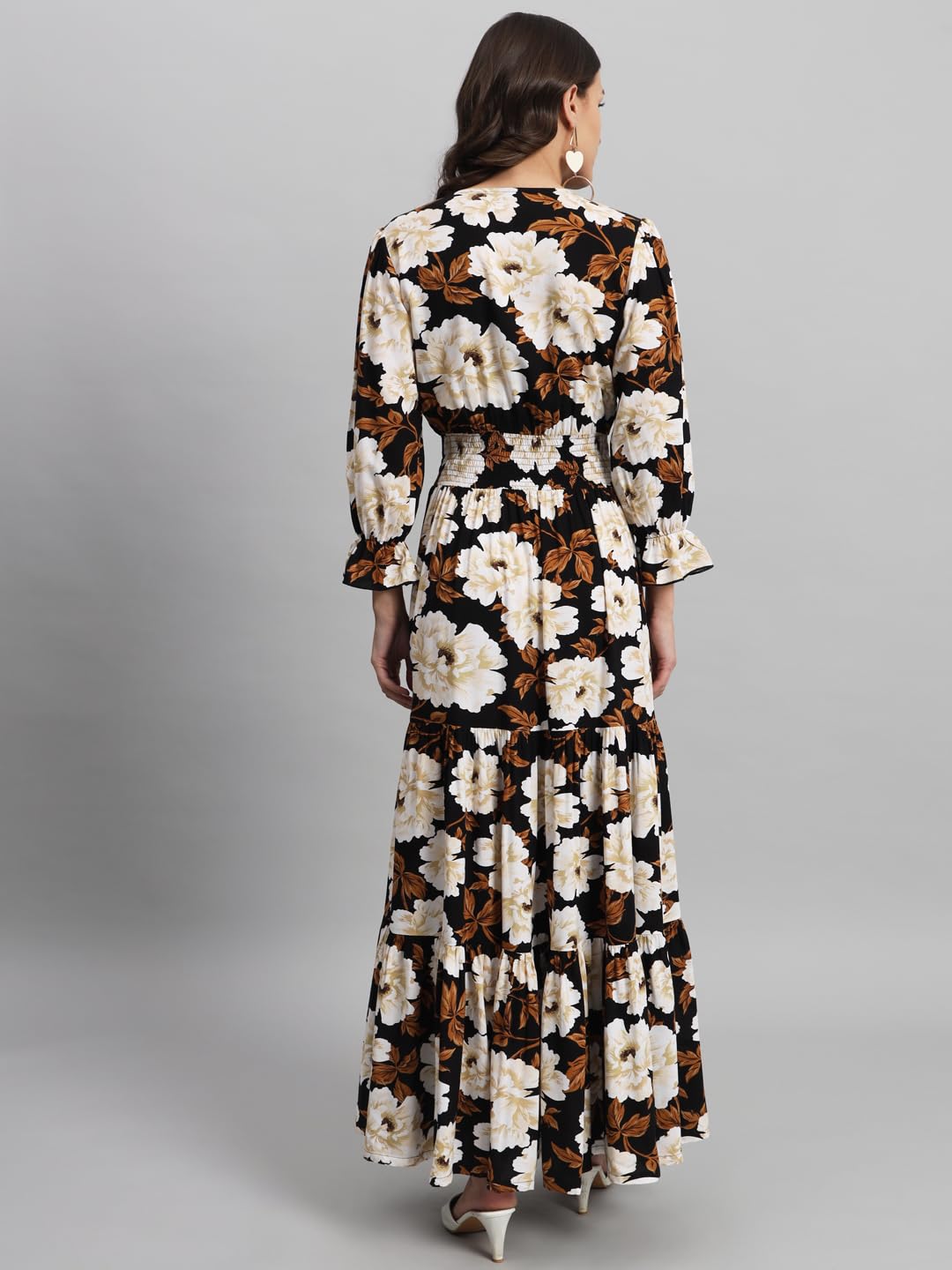 SHRITIK Women Floral Printed Rayon Smocking Tiered Maxi Dress