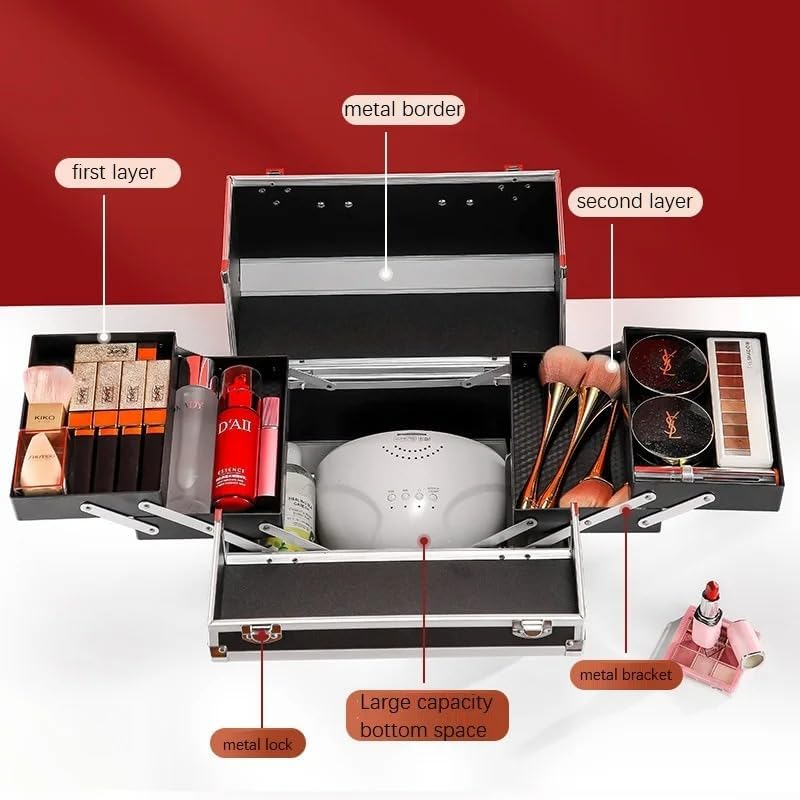 Superior Durability: Crafted from reinforced Grade-A aluminum alloy, this makeup organizer case ensures exceptional durability and protection for your cosmetics. The sturdy construction guarantees that your beauty essentials remain safe and intact, even during travel.