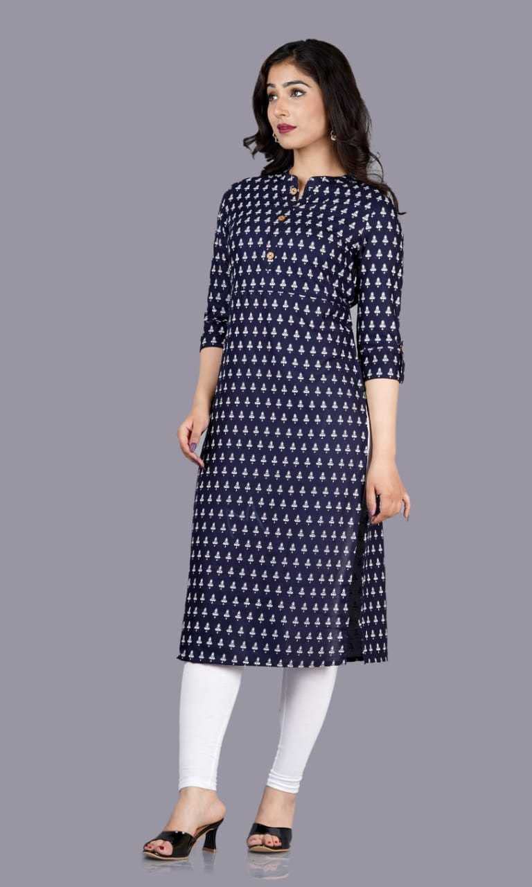 STYLE GANGA Women’s Rayon Printed Straight Kurti (Blue-M)