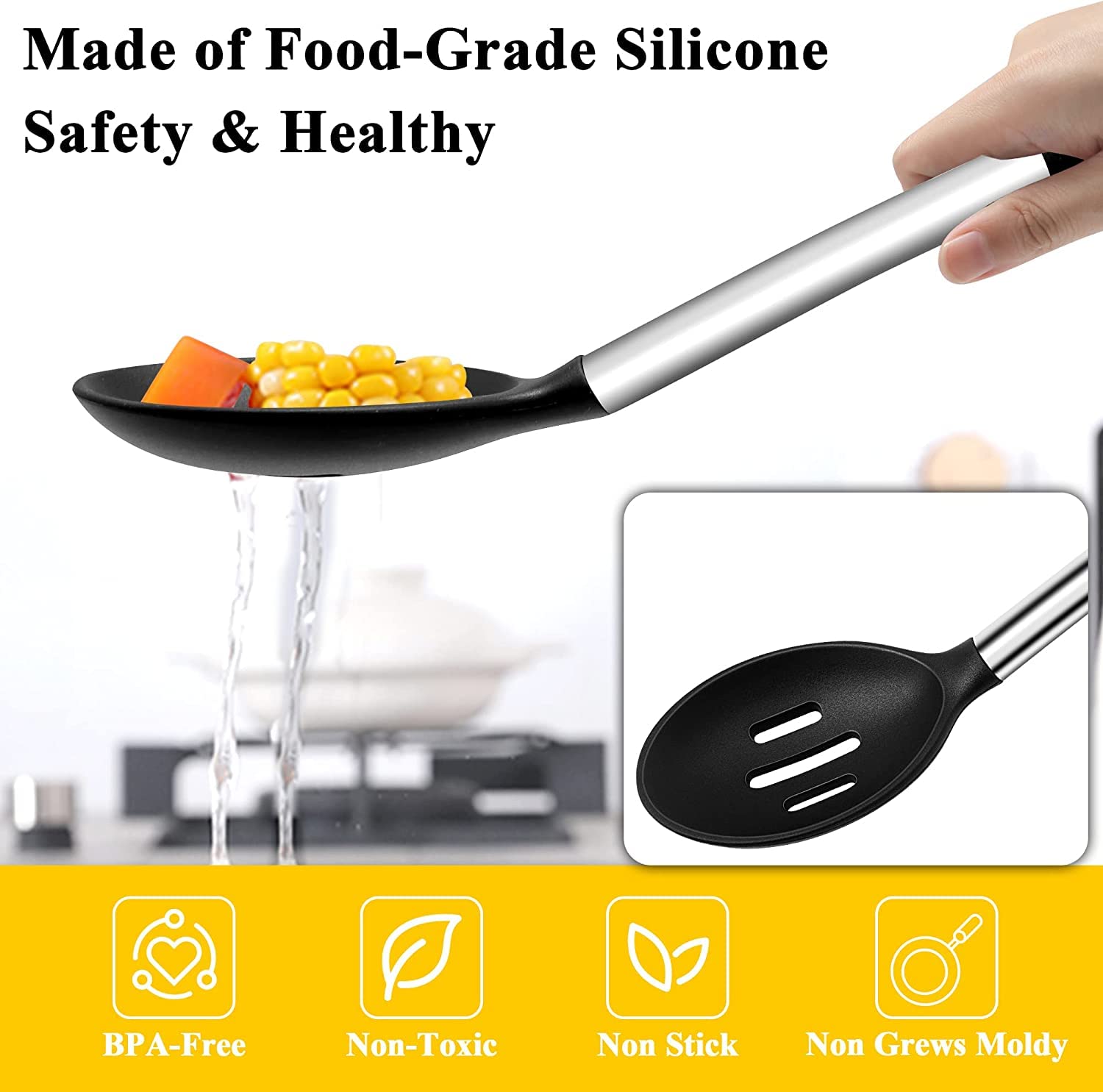 High-Heat, No Melt – High quality silicone means no more melted mixing spoons! Cook your favorite meals without worrying, as these kitchen utensils are heat resistant to 480°F