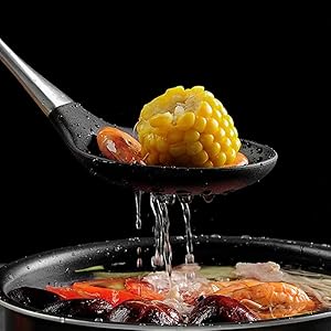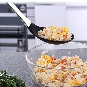 Versatile applications: the nonstick heat resistant spoons are suitable for baking frying flipping mixing and so on large spoon head allows ample space for scooping and draining large foods you can use them to mix batters fudge frosting honey jam salt sugar ice cream or hold other condiments give full play to your cooking skills and make delicious food for your family or friends
