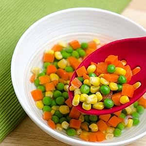 Essential kitchen accessory: these multicolored spoons are suitable for all types of cookware smooth edges will not scratch the non-stick pan durable and helpful for stirring mixing draining tasting turning and serving foods good cooking tools in your kitchen or restaurant