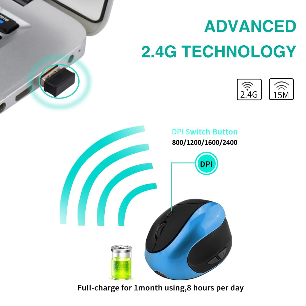 Plug-and-play and Wide Compatibility:The ergonomic mouse comes with a USB Nano receiver, plug and play directly.2.4GHz wireless technology ensure longer working distance-up to 33ft in 360 degree with no interference.Well compatible with Mac OS X, Linux and all versions of Windows such as Windows7/8/10/XP etc.Fits for desktop,laptop,PC,Macbook and other devices