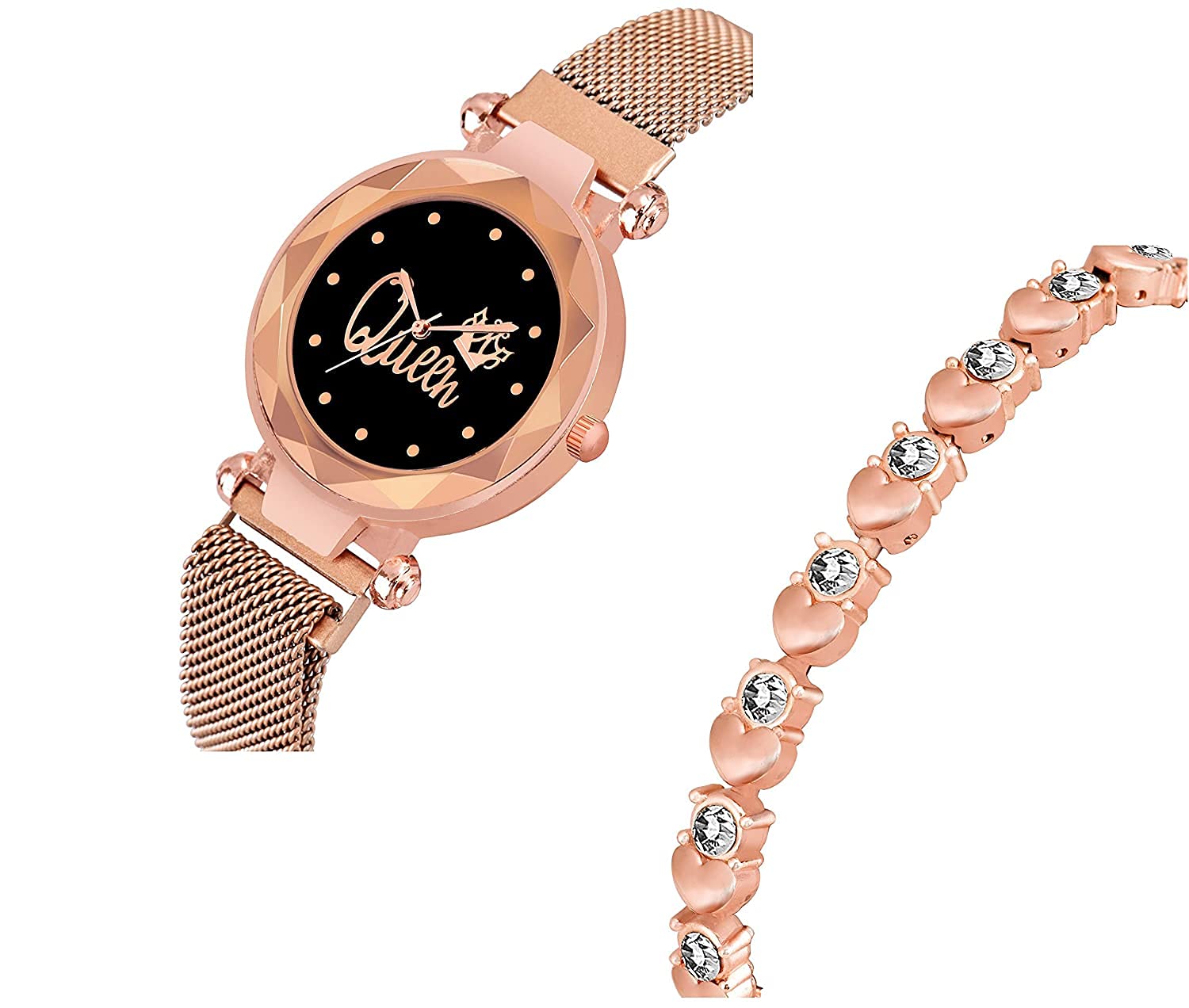 Watch Analogue Queen Black Dial Magnet Watch with Gift Heart Shape Bracelet for Women or Girls and Watch for Girl or Women (Combo of 4)