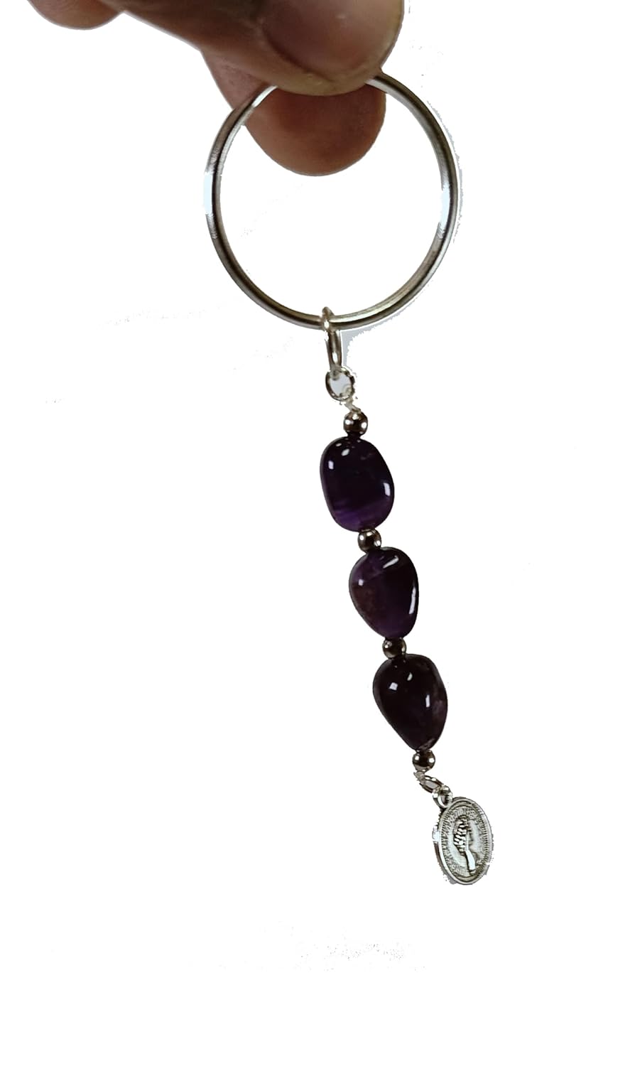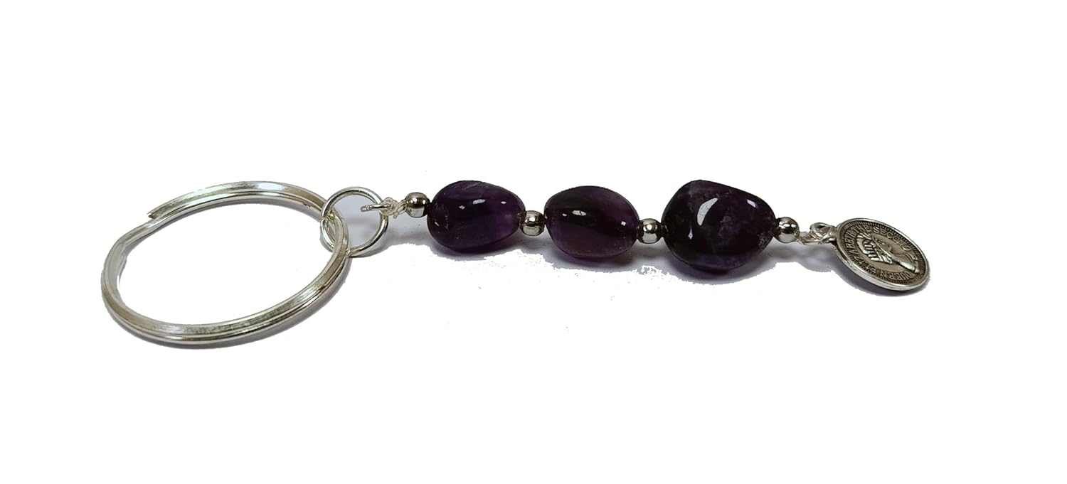Amethyst Tumbled Keychain – tumbled Queen victoria coin Crystal Keychain – Crystal Key Chain – Key Ring