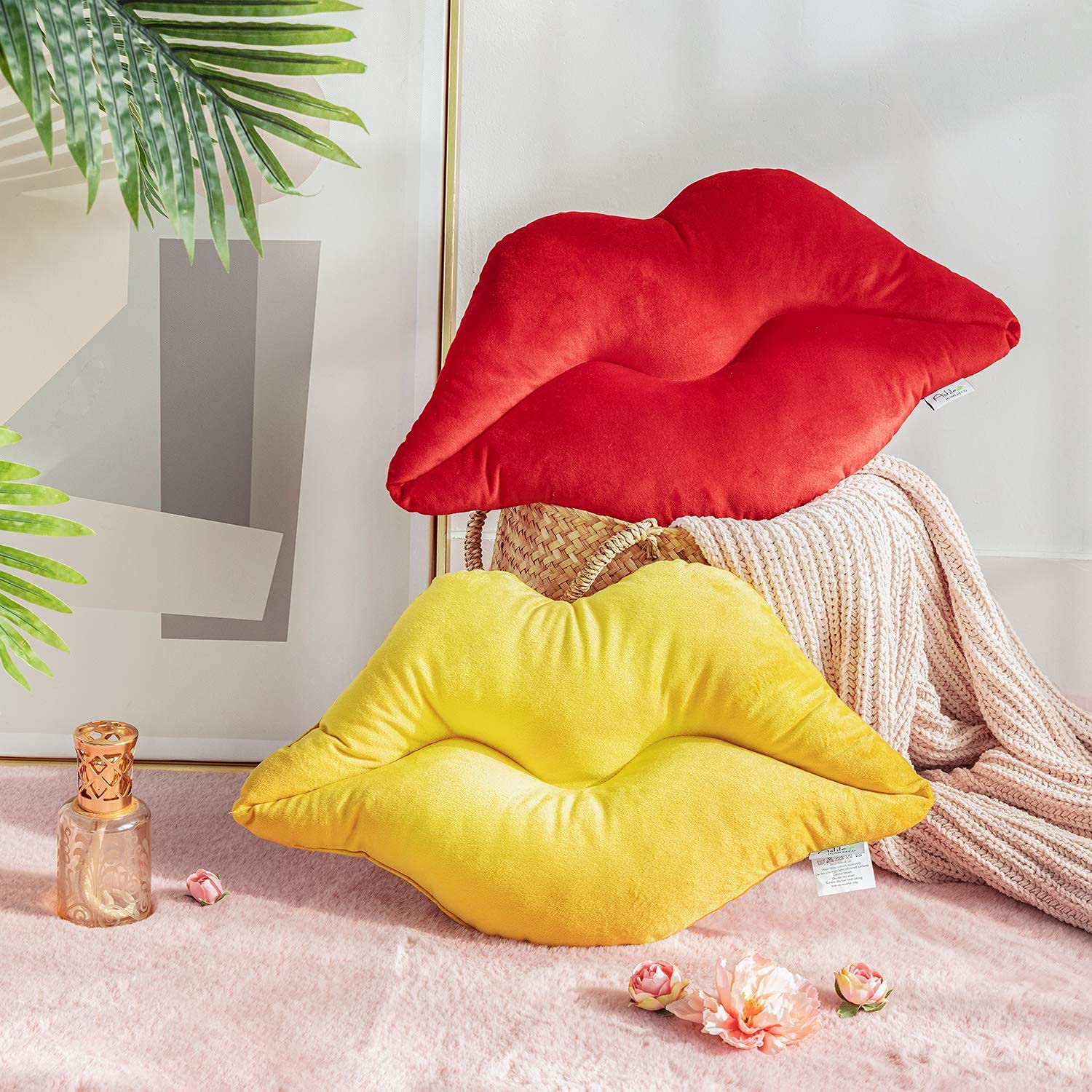 UNIQUE RED LIP DESIGN: The most unique throw pillow ever. We designed a red lip shaped throw pillow to add an energetic vibe to your home.NOTE: Contains one 20” x 11” pillow case and one cushion ONLY