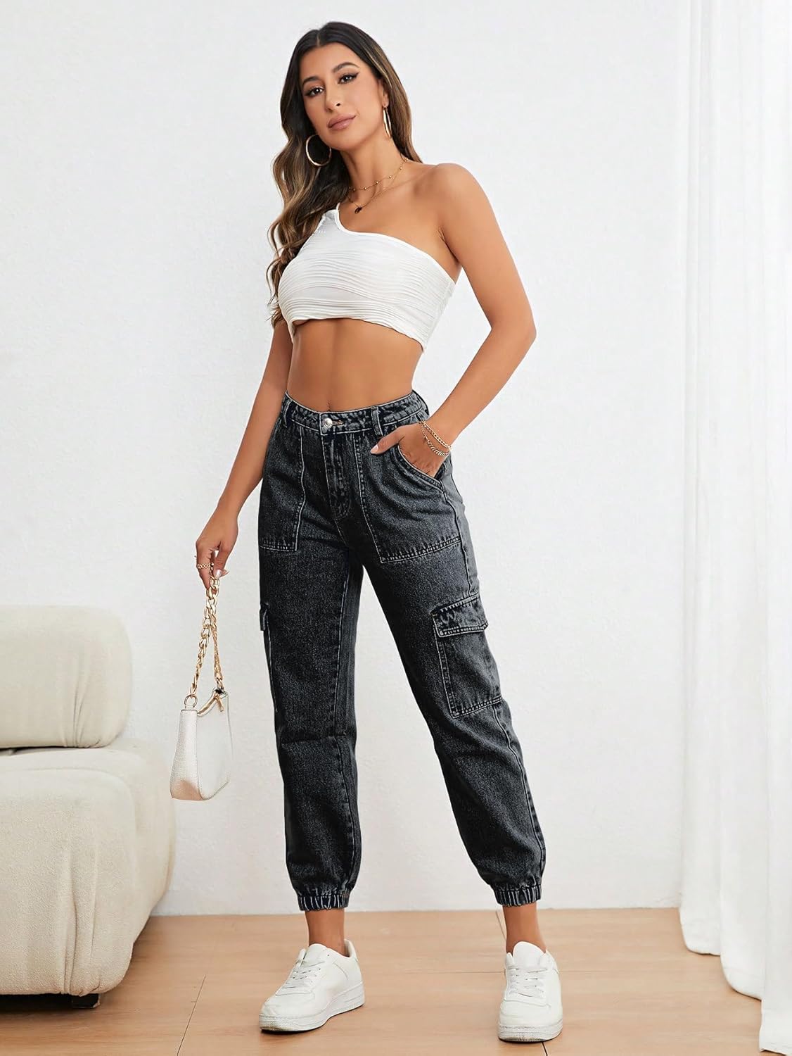 Generic Name : Women’s Fashion Solid Color Jeans Style Cargo Pants Jeans