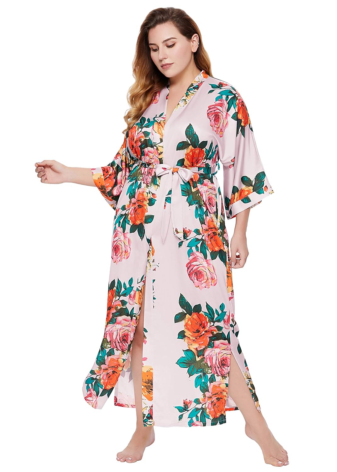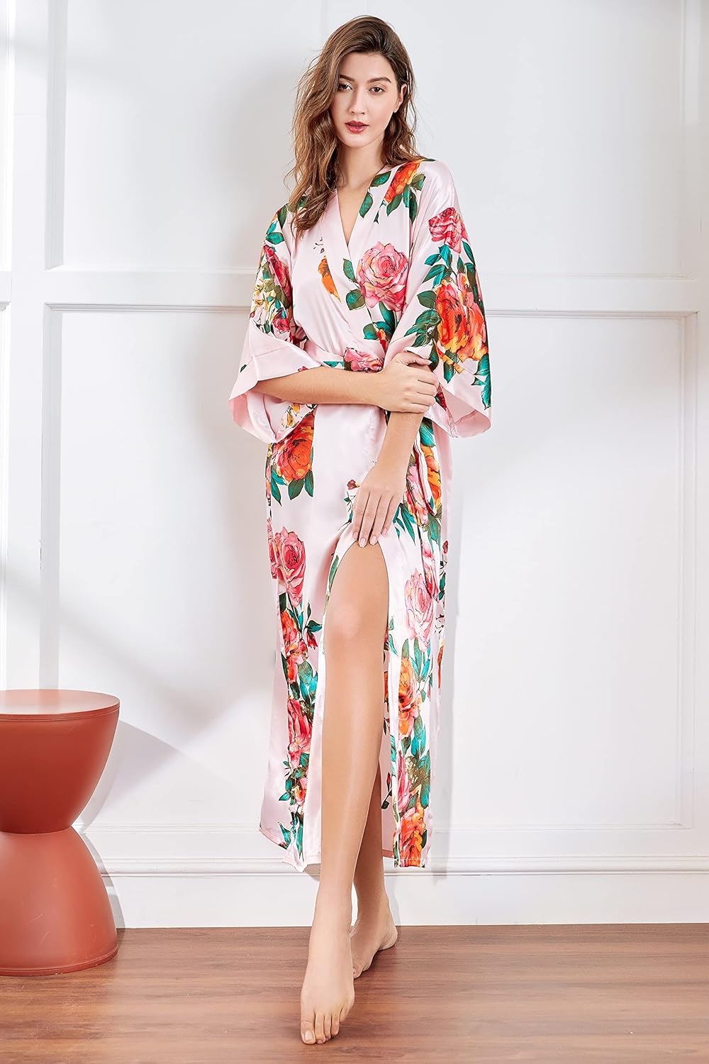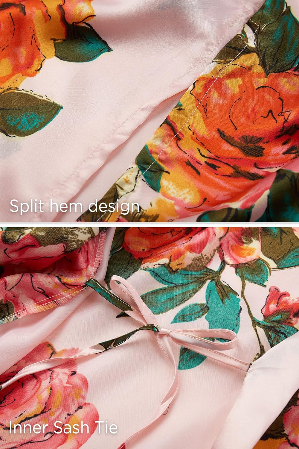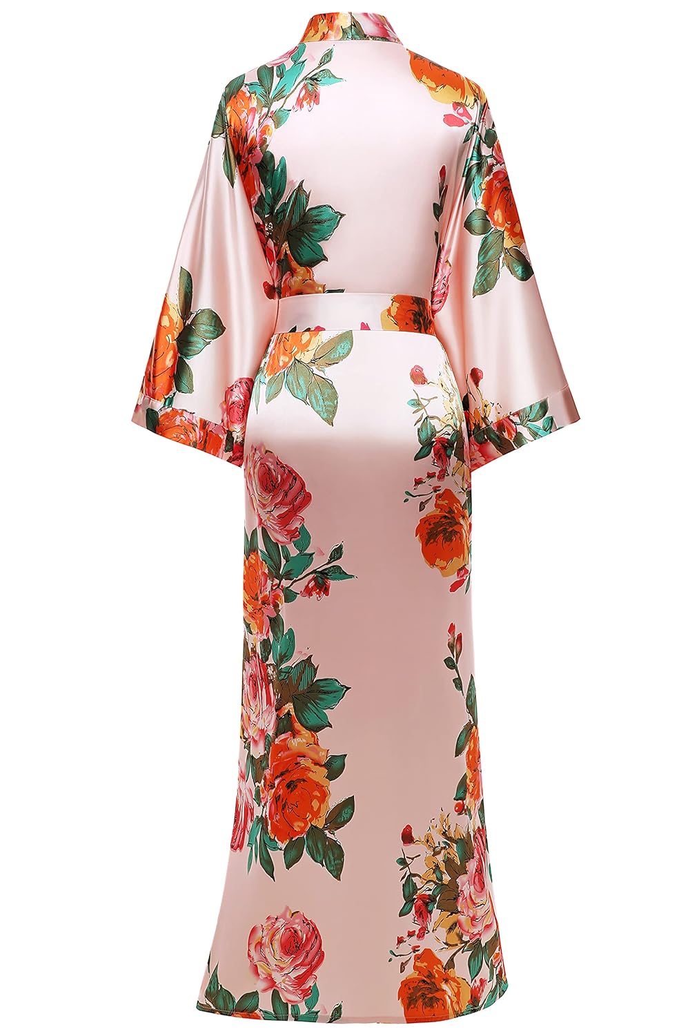 BABEYOND Women’s Dressing Gown Kimono Flowers Branch Printed Maxi Long Women’s Bathrobe Pear Flowers Beach Jacket Bridal Hen Night Party Sleep Robe