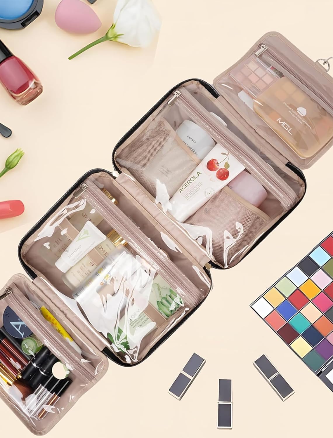 Super Capacity : The Toiletry Bag Travel Organizer, It features 4 separate compartments designed to meet all your travel needs.