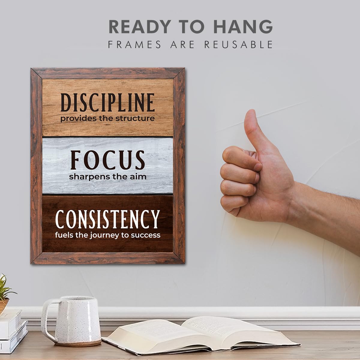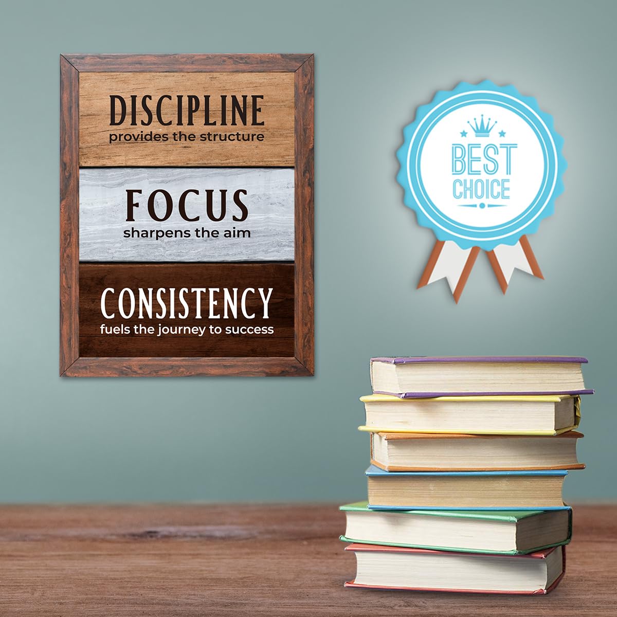 IDEAL SIZE AND QUALITY – This Discipline painting with frame (14 X 11 inches) is made of premium quality professionally matted Engineered wood; a protective Acrylic glass cover in front and strong MDF wood backing. Which make it light weight, break resistant and long lasting motivational quotes frames.