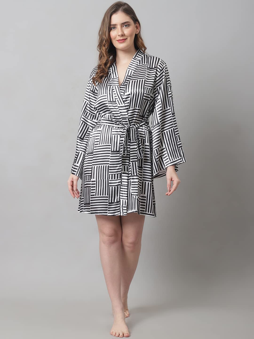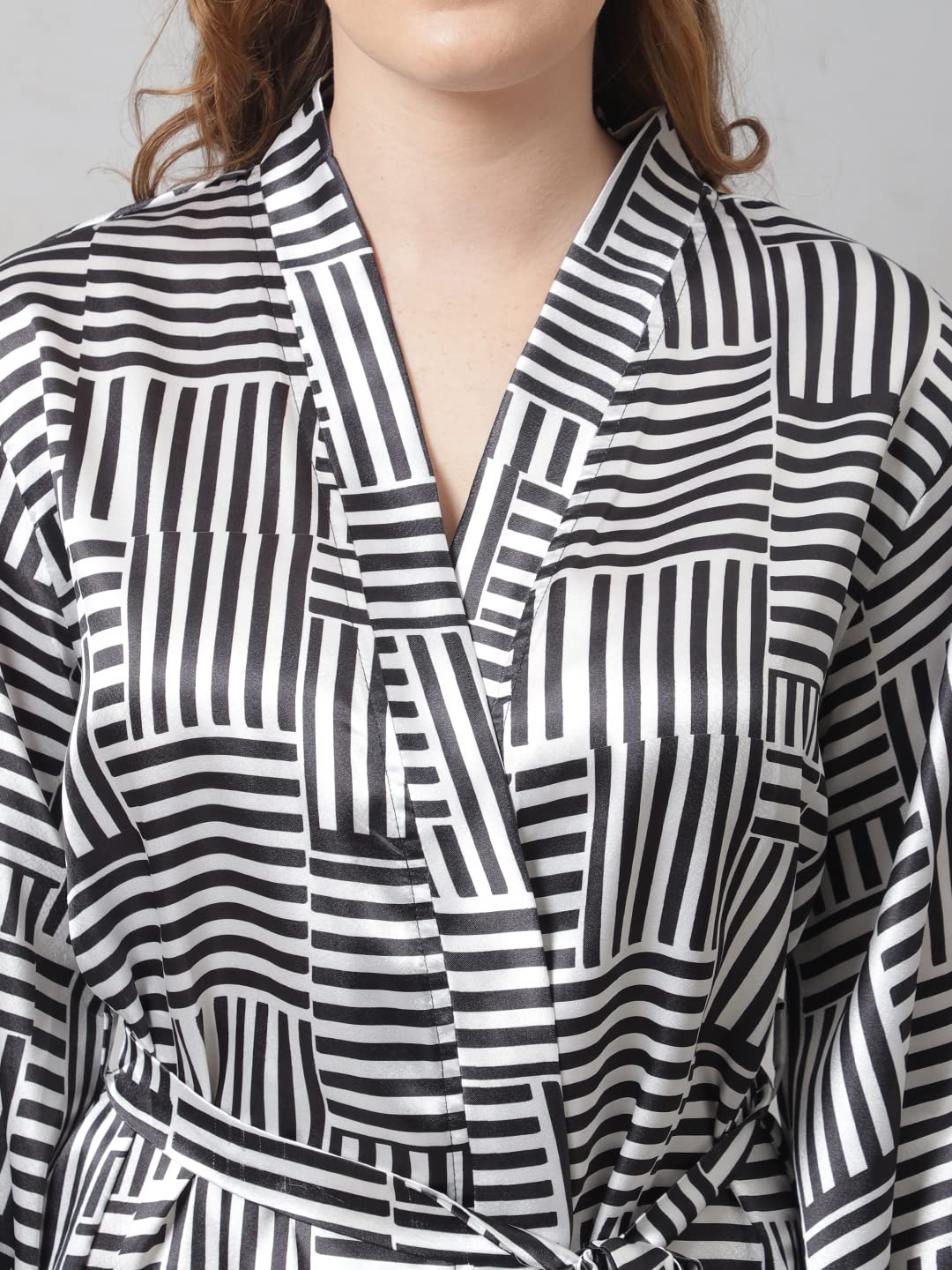 Satin robe , Made with satin Printed fabric robe, has an open front with a tie-up detail, full sleeves