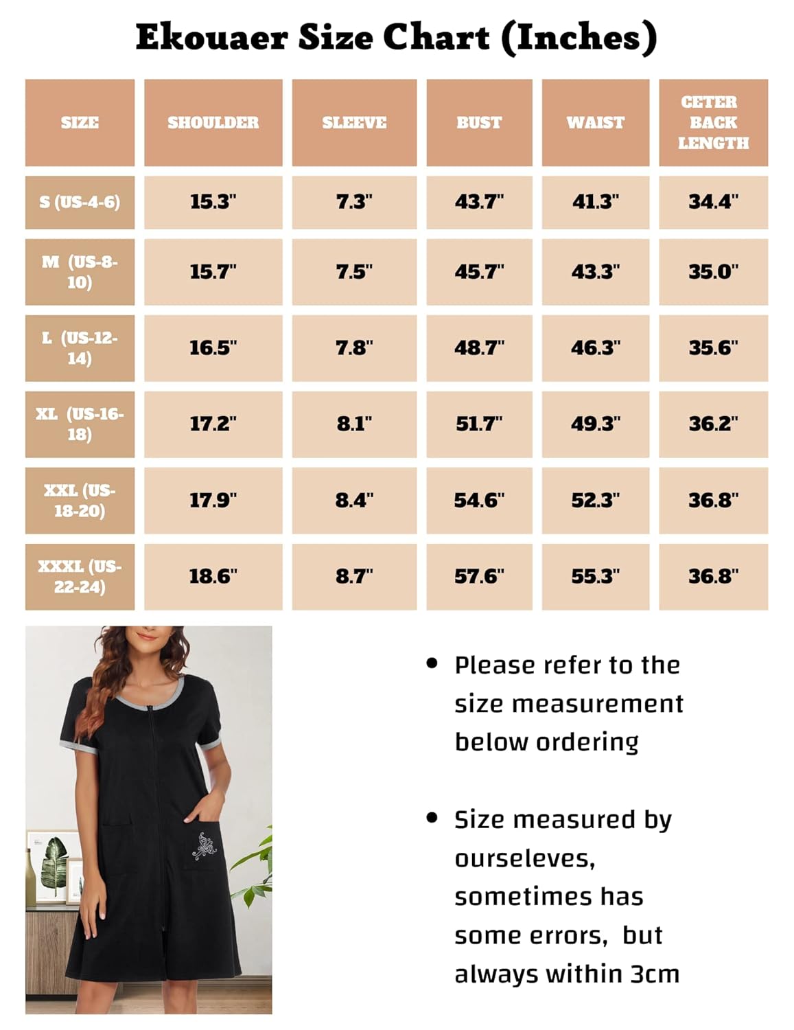 Ekouaer women nightgown zipper front housecoats lightweight duster. Short sleeve sleepwear,soft duster and casual housewear. Long length nightgown house dress with useful pockets.