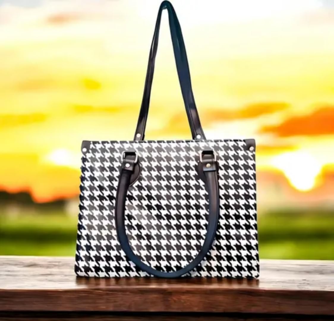 Make a bold fashion statement with this stylish ladies tote handbag featuring an eye-catching zigzag print pattern. The thoughtfully designed double handle system offers versatile carrying options – use it as a shoulder bag or carry it by hand for different occasions. The spacious interior, complemented by a coordinated printed lining, provides ample room for your daily essentials while maintaining a sleek silhouette. Perfect for work, shopping, or casual outings, this handbag combines practicality with contemporary style. The durable construction ensures it keeps up with your busy lifestyle, while the distinctive zigzag pattern adds a modern geometric flair to any outfit. The balanced proportions and carefully crafted handles make it comfortable to carry, whether you’re heading to the office or enjoying a weekend adventure.