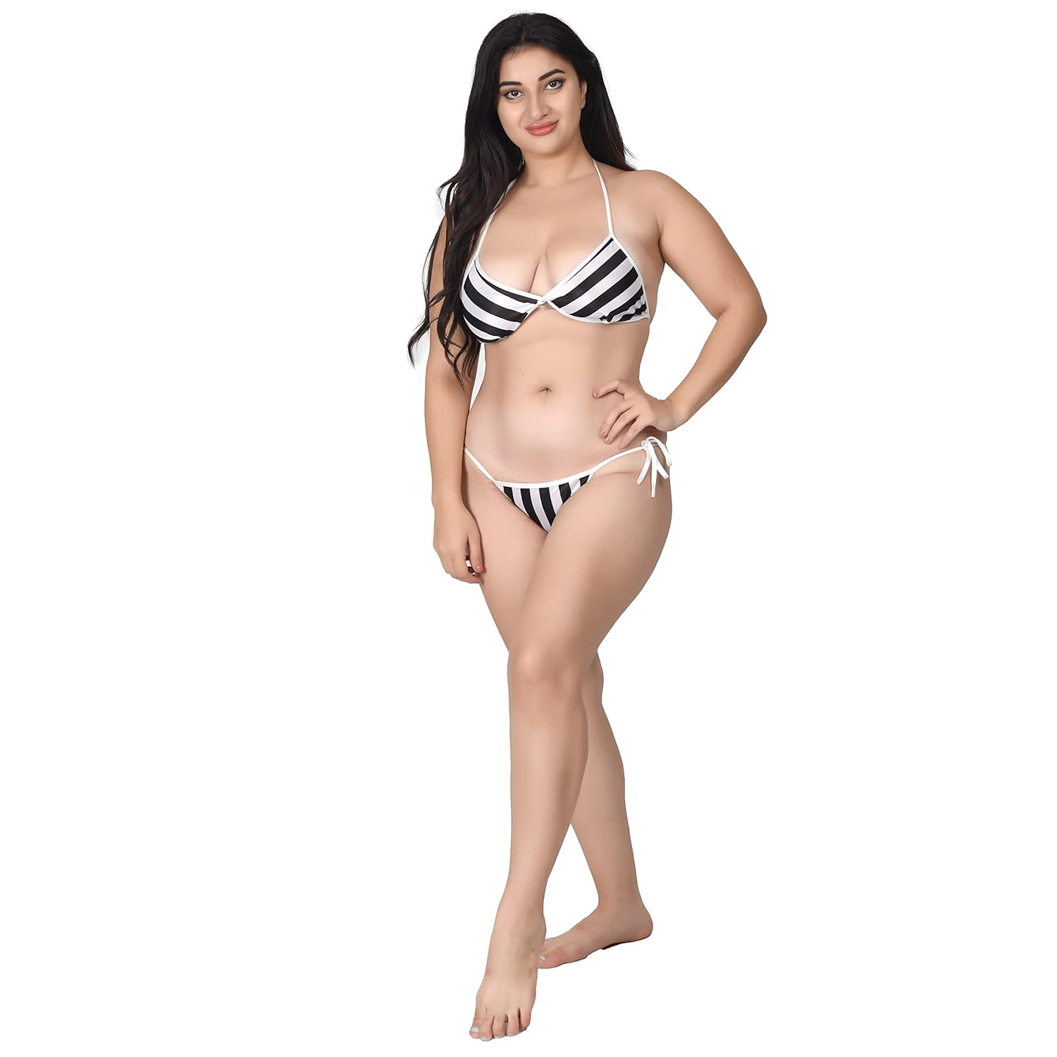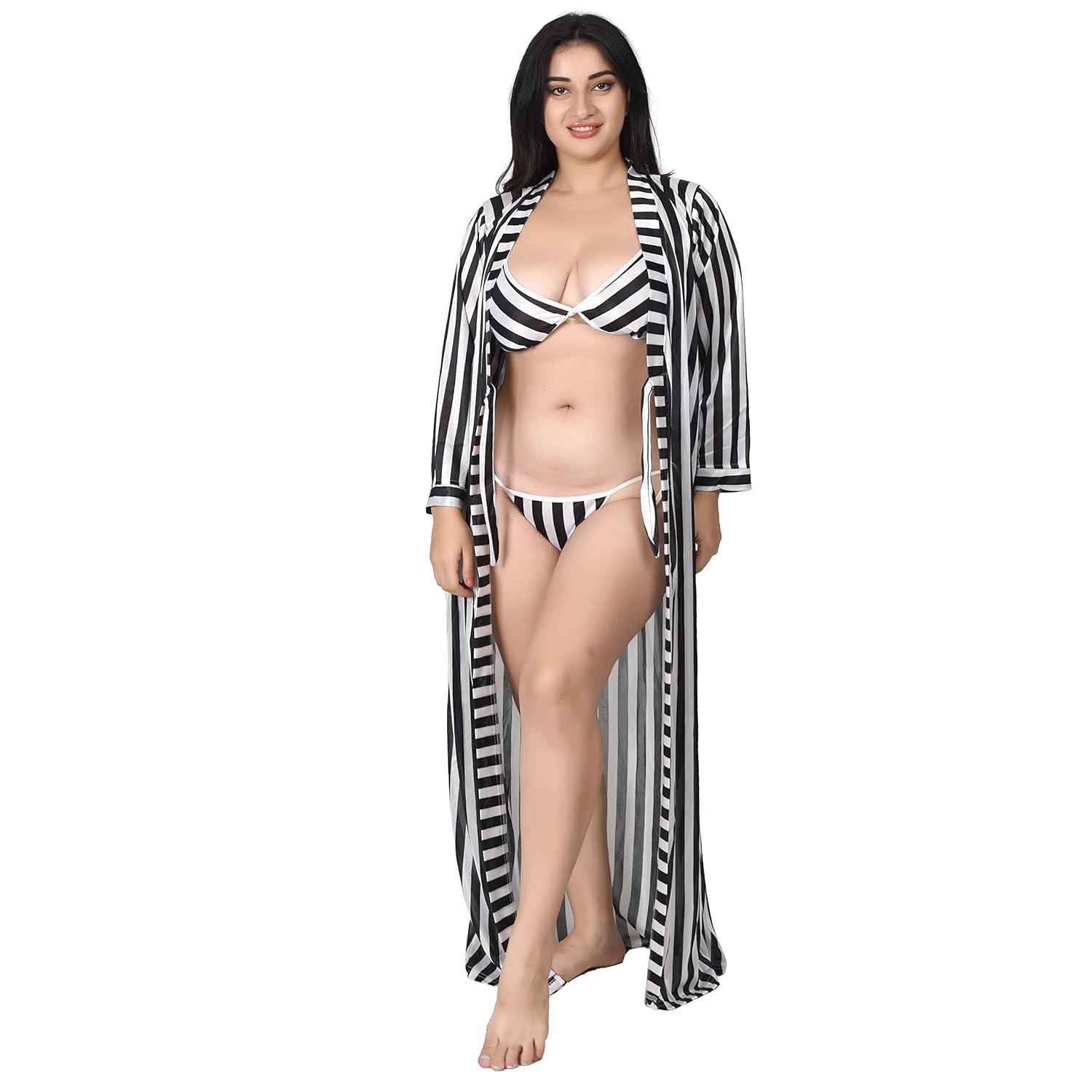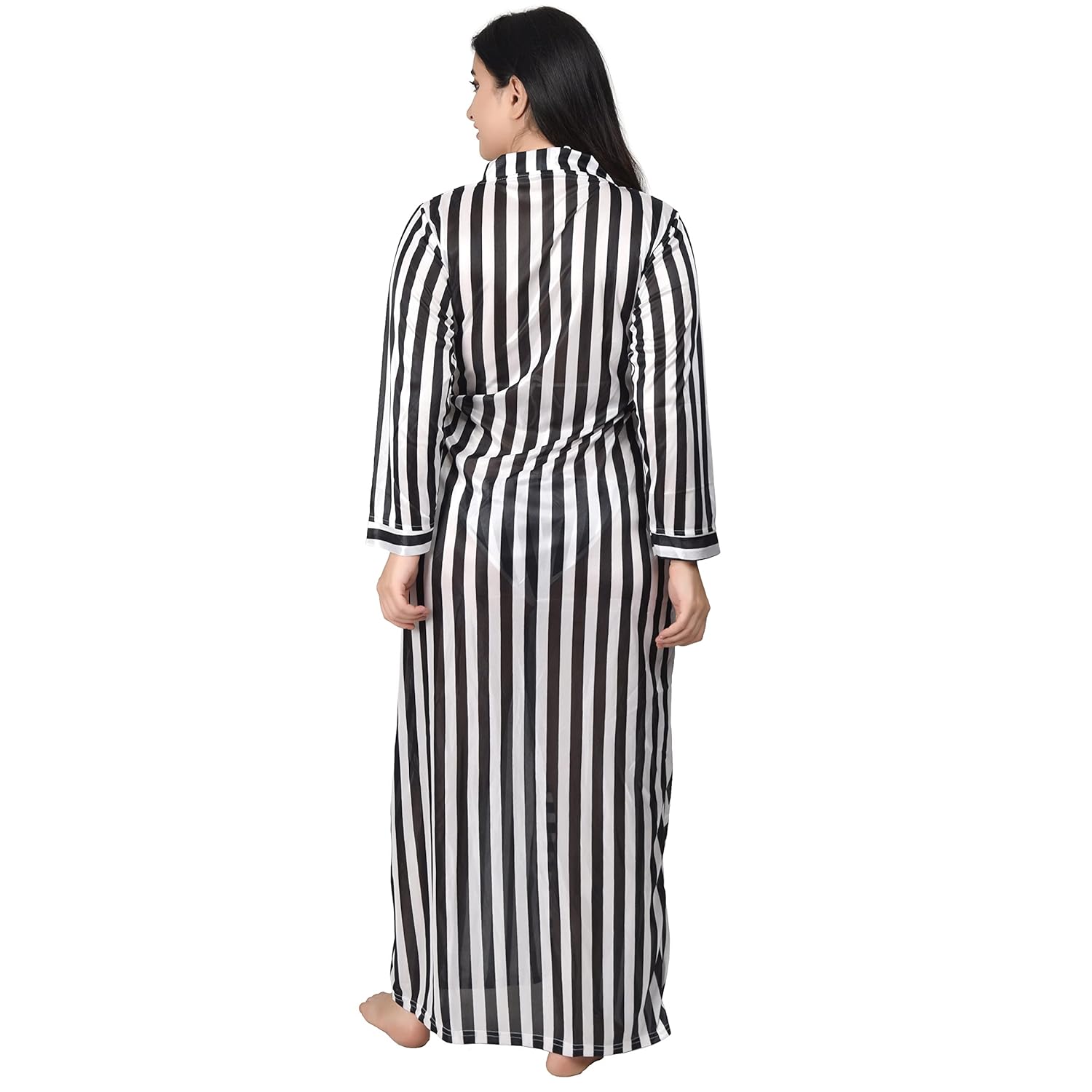Size & Colour: Free size black striped night robe for women.