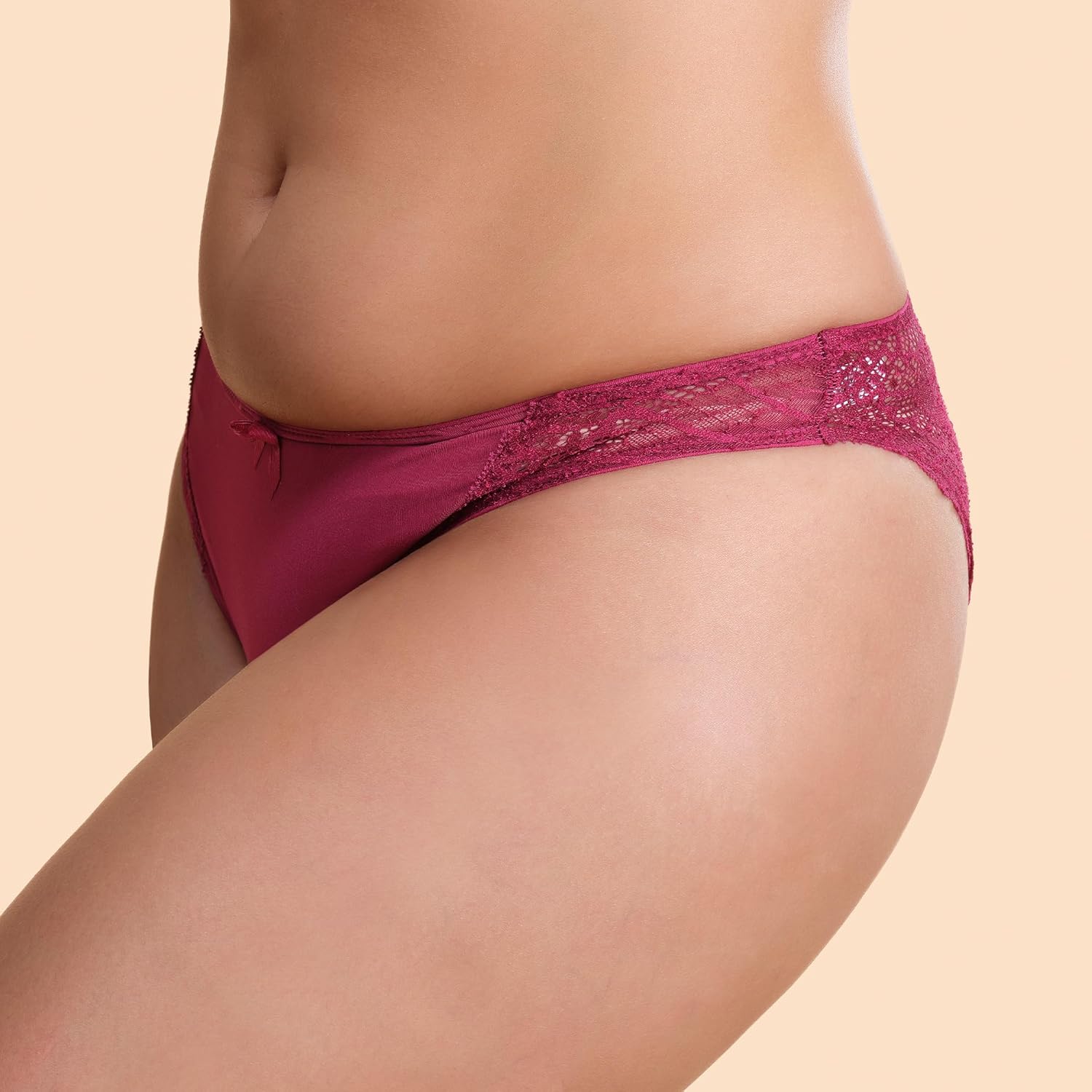 P091 – All-day, absorbent comfort with pure cotton crotch. Low waist panty with gallon lace for elegant look. Precisely cut leg curve and pattern for a perfect low-slung fit under outerwear.