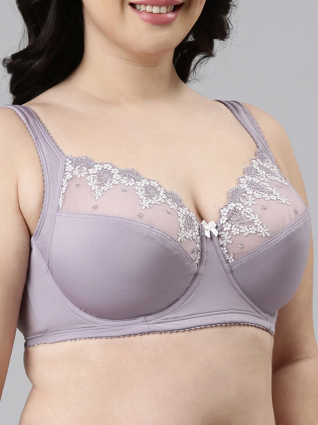 This support bra from Enamor makes for a pretty yet practical innerwear option. It is enhanced with cut-and-sew sectioned cups for ultimate support and elegant lace and a dainty bow for a charming, graceful look.