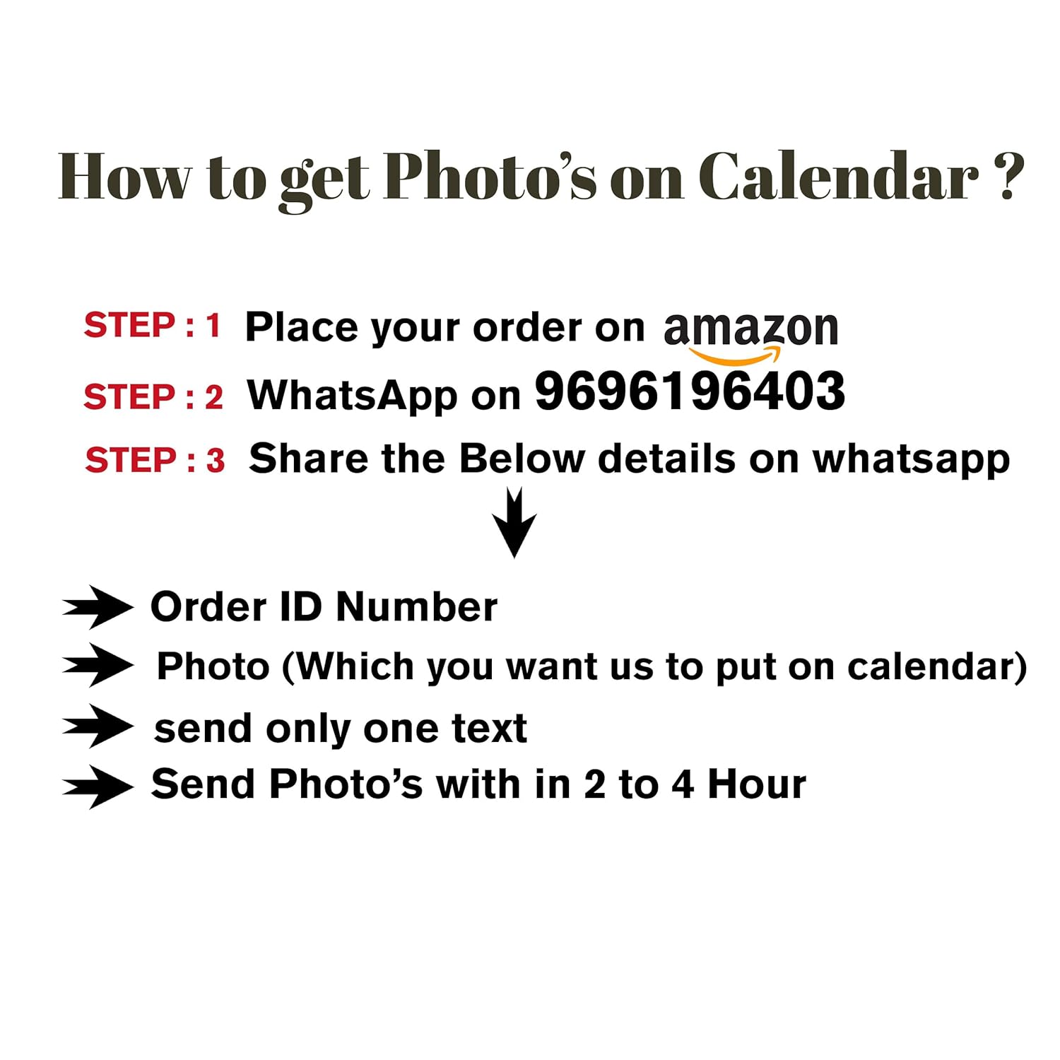 Calendar size 13×19 inch Will Be Ready Within 24 Hours When I Received Your Picture. Please Send Photo’s with in 2 Hour