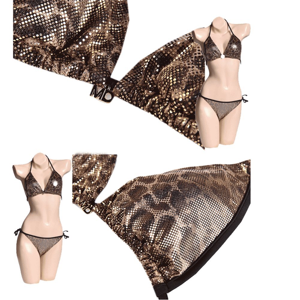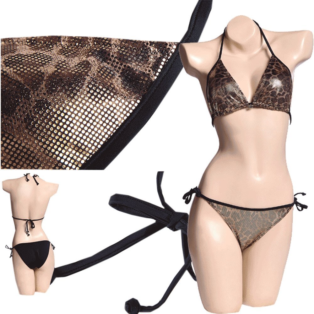Golden Black Eye-Catching Adorable Bikini Set. This bikini is absolutely gorgeous and the design totally unique. Leave the shy girl home and go hot this season, seriously. Formed Lightly Padded smooth and soft cups adds shapes. Glittering Stretch swim fabric. Low rise, hipster styling. Self-tie string fastenings for an adjustable fit. 80% Polyamide, 20% Elastane 100% Brand new & Imported Availibility: SMALL, MEDIUM,LARGE,X-LARGE