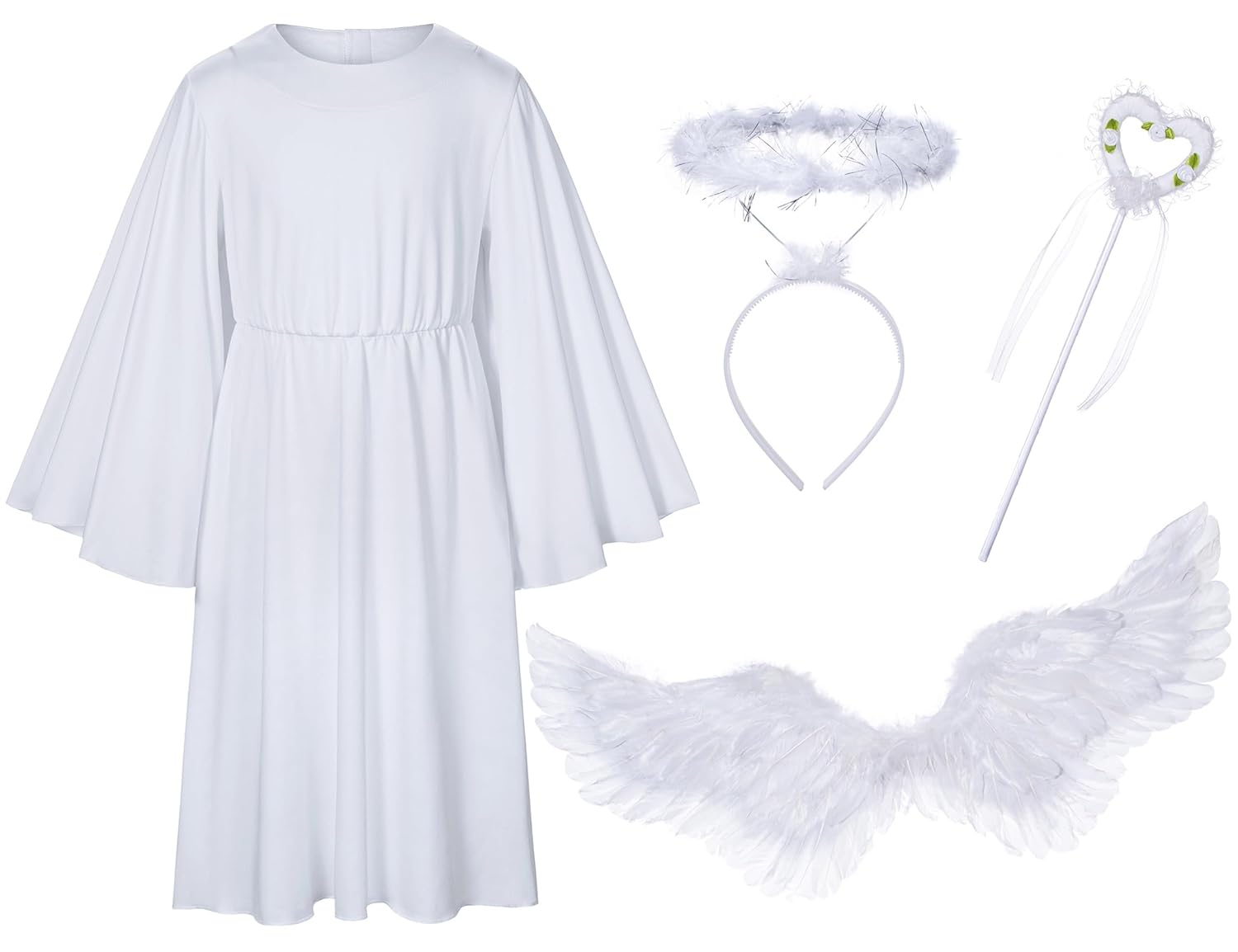 This angel outfit uses spacious angle robe white feather wings angel handband and angle wand,which can show the divineness to any makeup party and birthday halloween christian beauty pageants. making your dress more eye-catching.