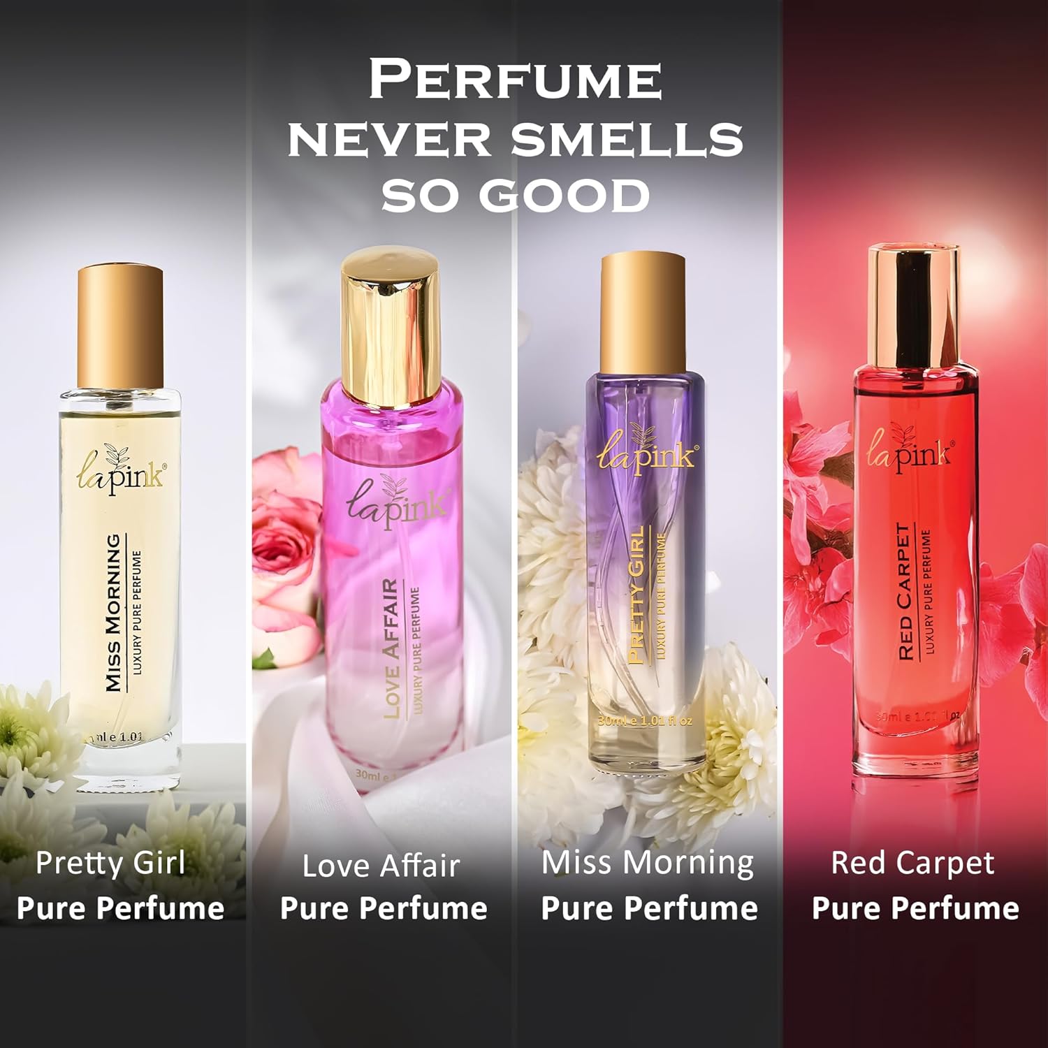 Bid goodbye to the stress of finding the perfect gift to impress your loved ones! Because La Pink has a solution for you. While a bottle of lovely perfume is an undeniable and timeless gifting option, financial constraints can sometimes prevent you from taking the next step. The reason is simple; a good, enriched perfume is typically expensive. But worry not! After delving deeper into your issues, La Pink comes up with a brilliant solution. Paying close attention to the Indian market, La Pink introduces a beautiful perfume gift set for women, consisting of four luxurious variants that are gorgeous and affordable at the same time. So, let’s take a quick look at what makes La Pink women’s perfume gift sets special. What’s Inside La Pink Women Perfume 30ml Gift Sets? La Pink perfume gift sets for women are presented in a premium packaging box containing all four variants; Red Carpet, Pretty Girl, Miss Morning, and Love Affair. Every kind is available in 30ml and caters to a variety of reasons, events, and moods, each symbolizing a particular moment of the day. For example, Red Carpet is appropriate for any gorgeous and high-profile event at night. Love Affairs is an excellent choice for dating both during the day and at night. Miss Morning is a must-have for the day because it exudes enthusiasm. Pretty Girl is an attractive, melodious song for teenagers or girls in their early twenties, and vice versa. Each scent is distilled from a pure perfume base of more than 20%, backed by French perfumery techniques, and has an unbeatable long-lasting endurance for more than 12 hours.