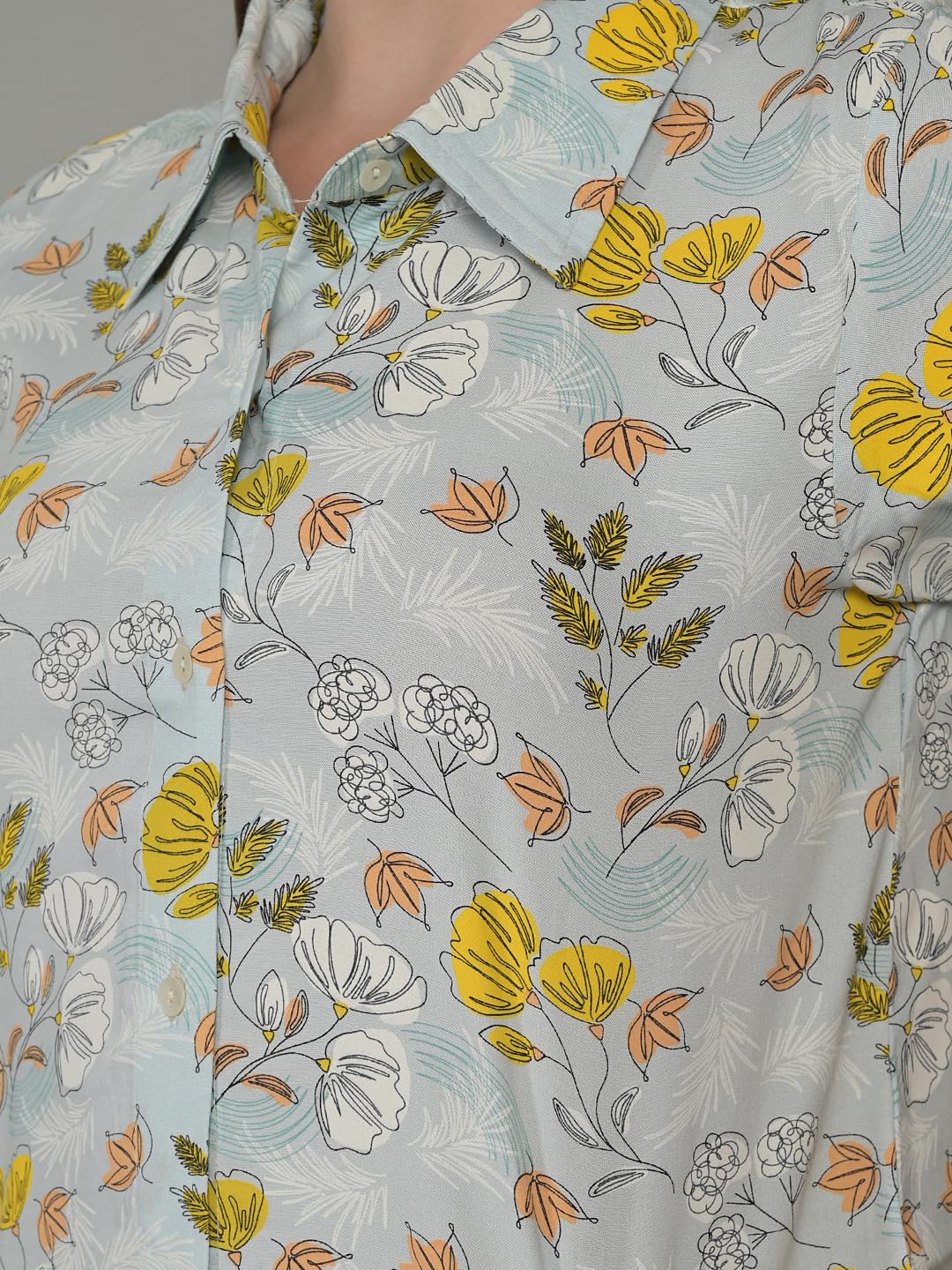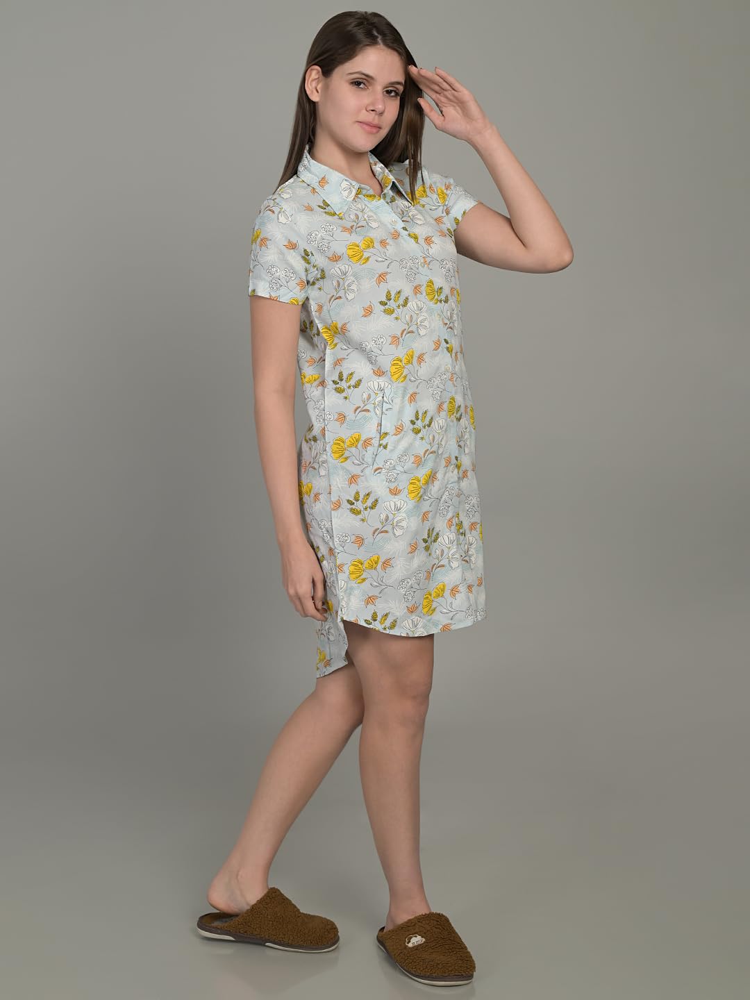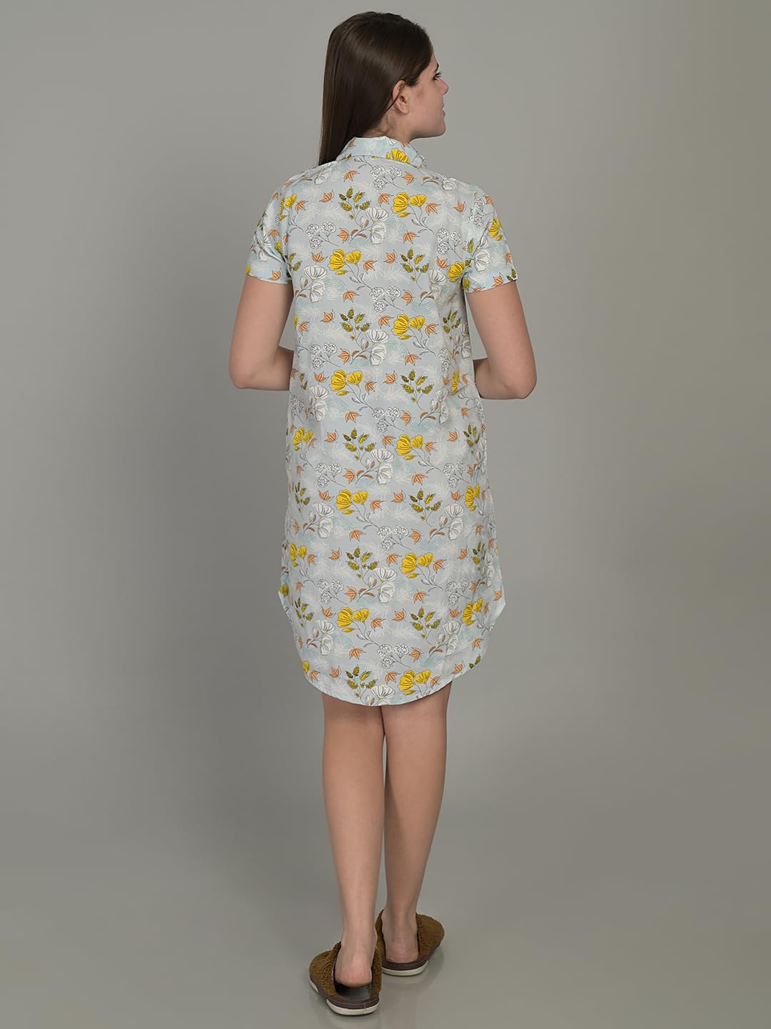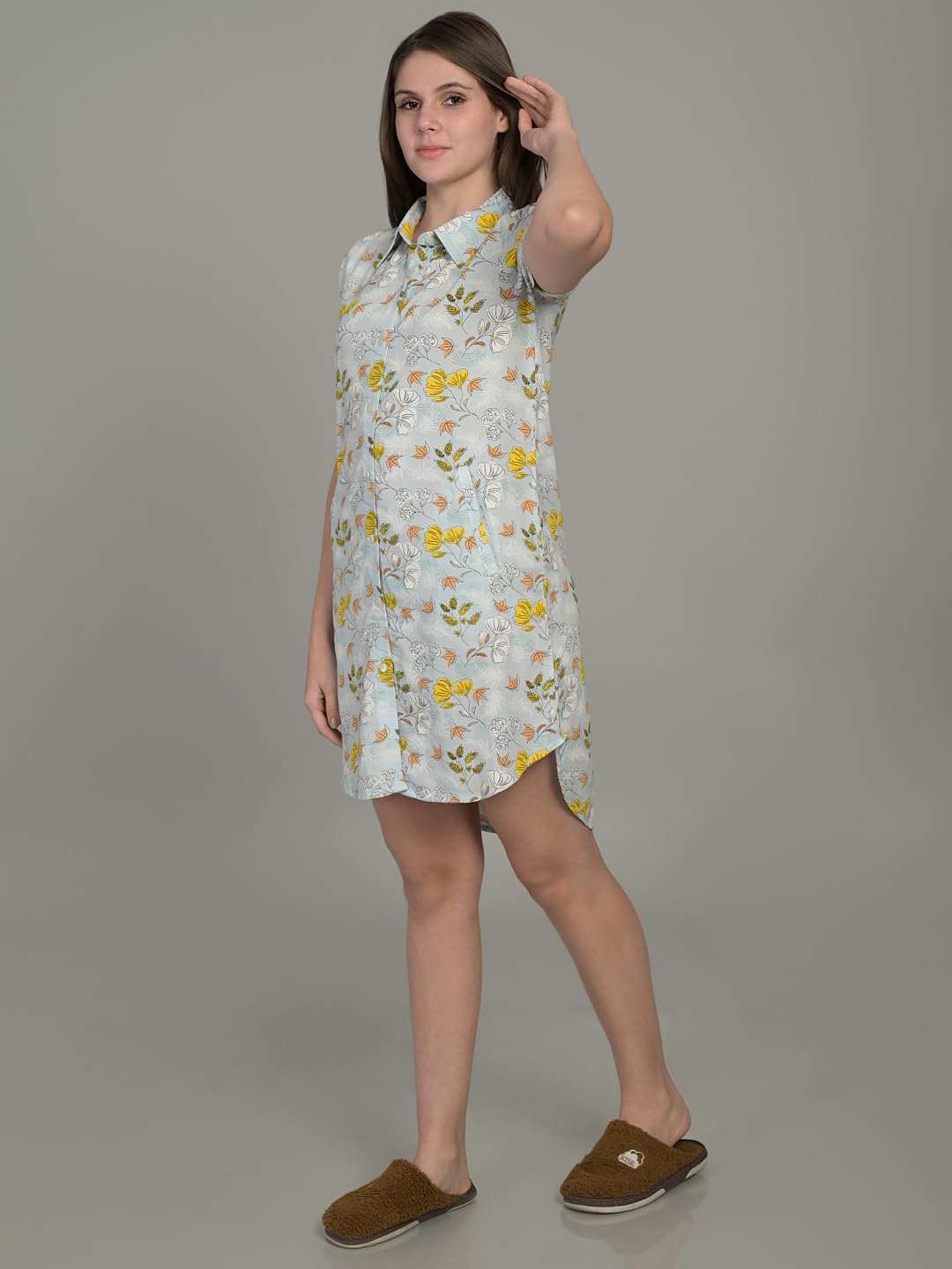 Maysixty Women Pure Rayon Printed Collared Blue Half Sleeve Short Night Dress
