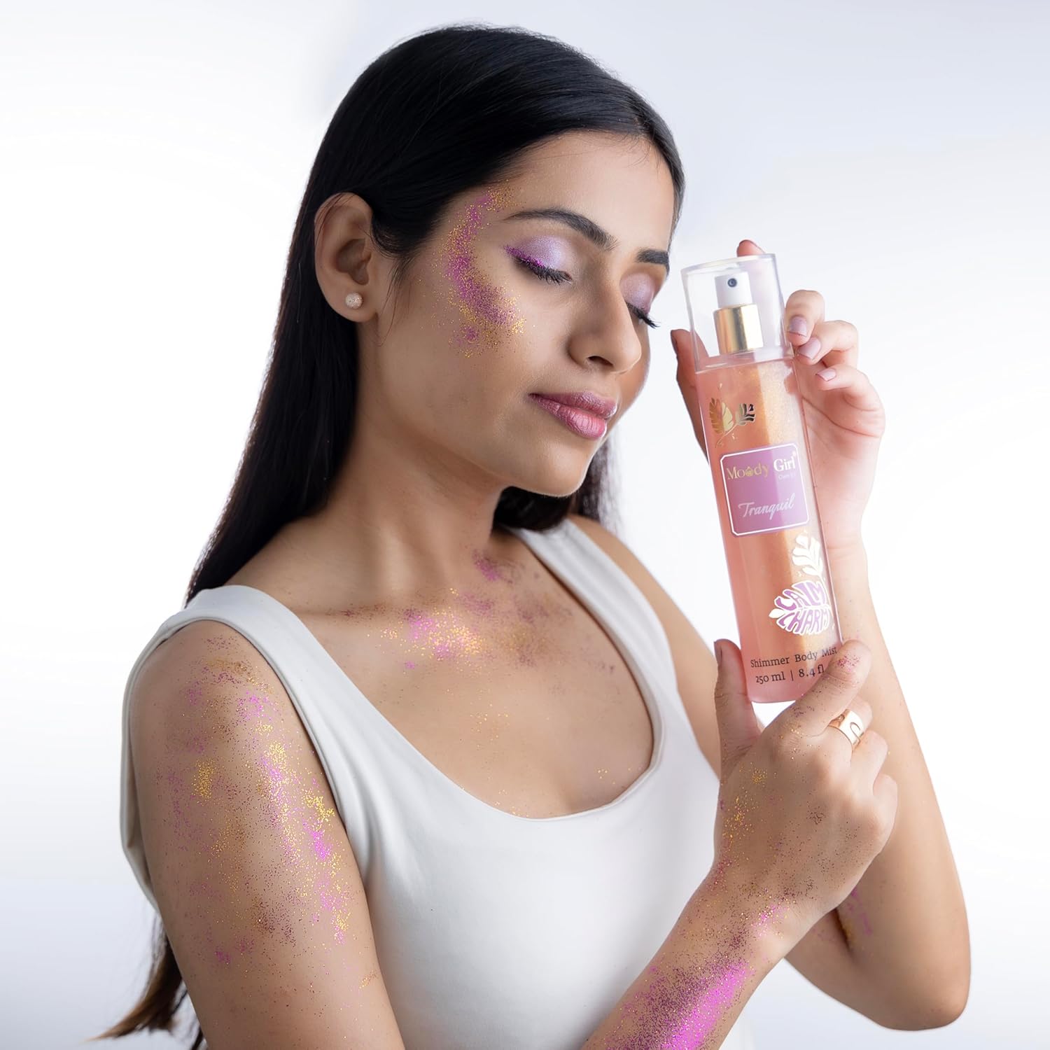 Moody Girl Tranquil Luxury Shimmer Body Mist for Women 250ml | Passionfruit, Tangerine, Peony & Berries | Musky & Fruity | Ideal for Gifting to Women & Girls