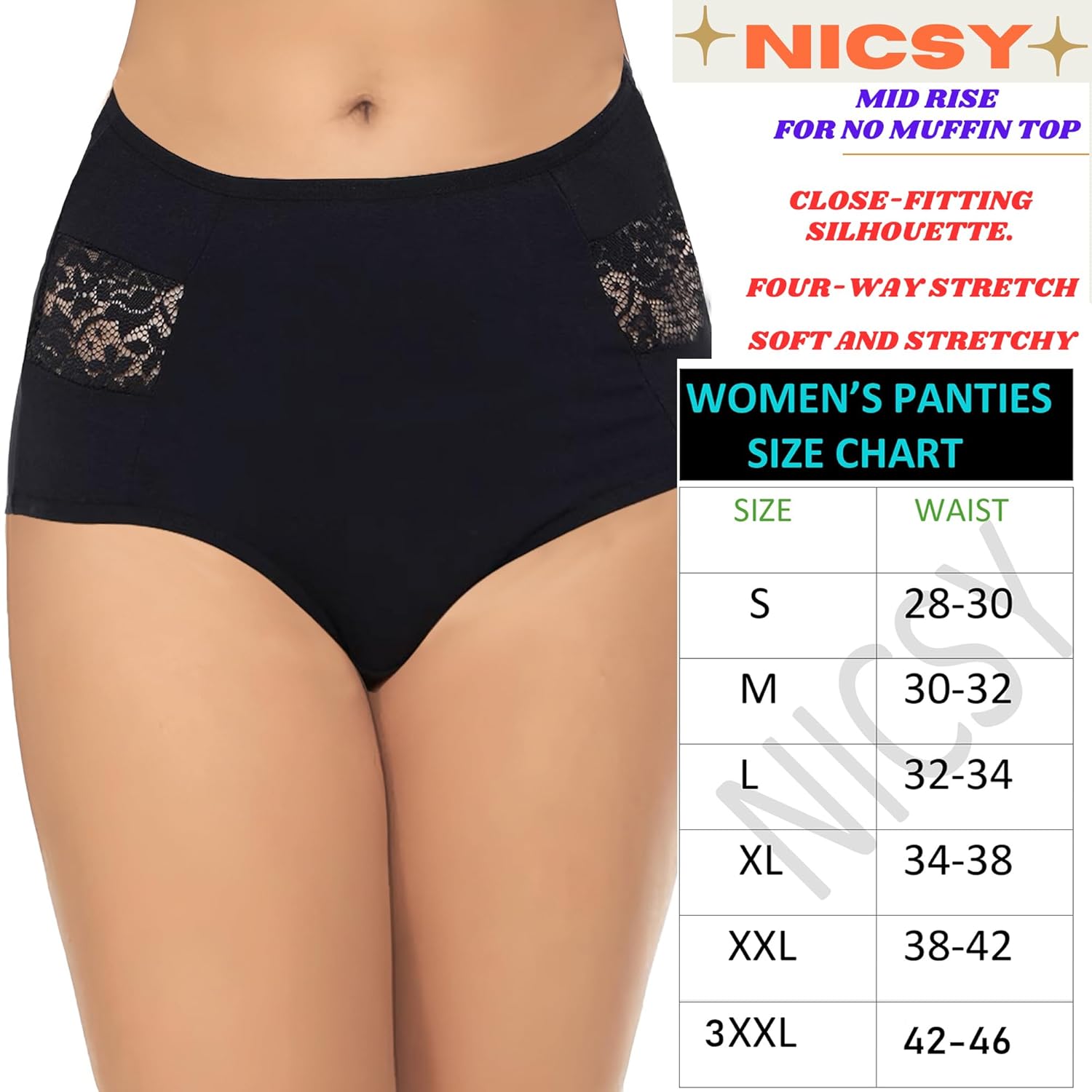 Women’s Underwear Cotton Lace Panties for Women, Soft Ladies Lace Underwear, Hipster, Briefs, Mid Waist Bikini Panty