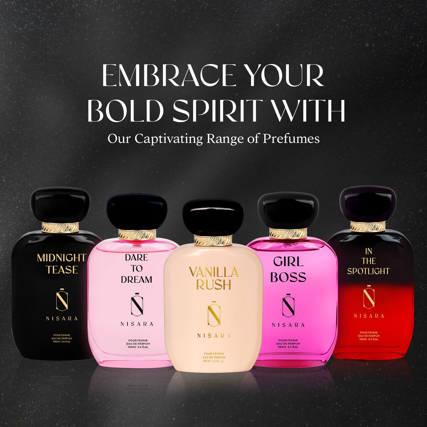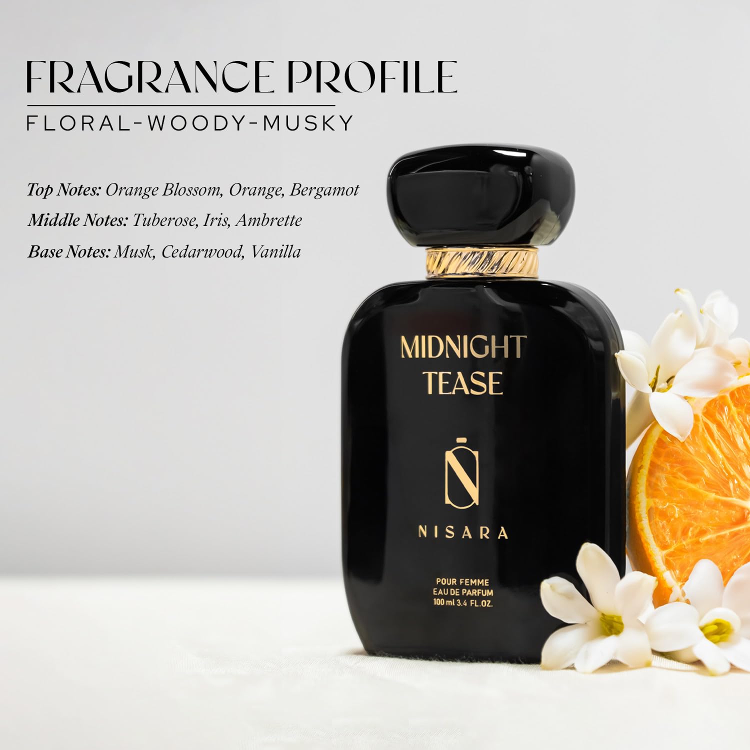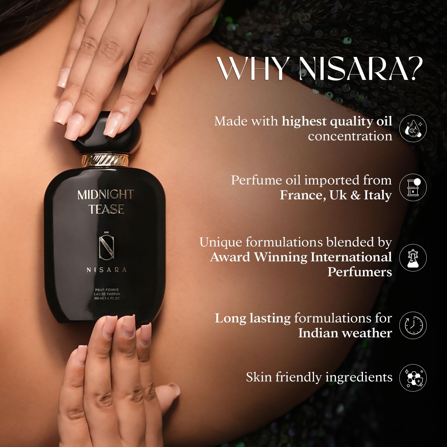 Just like an enchantress, exude the strong and enticing fragrances of our Nisara Midnight Tease with its sweet & sensual aroma that will leave them enthralled by your presence and glamour.