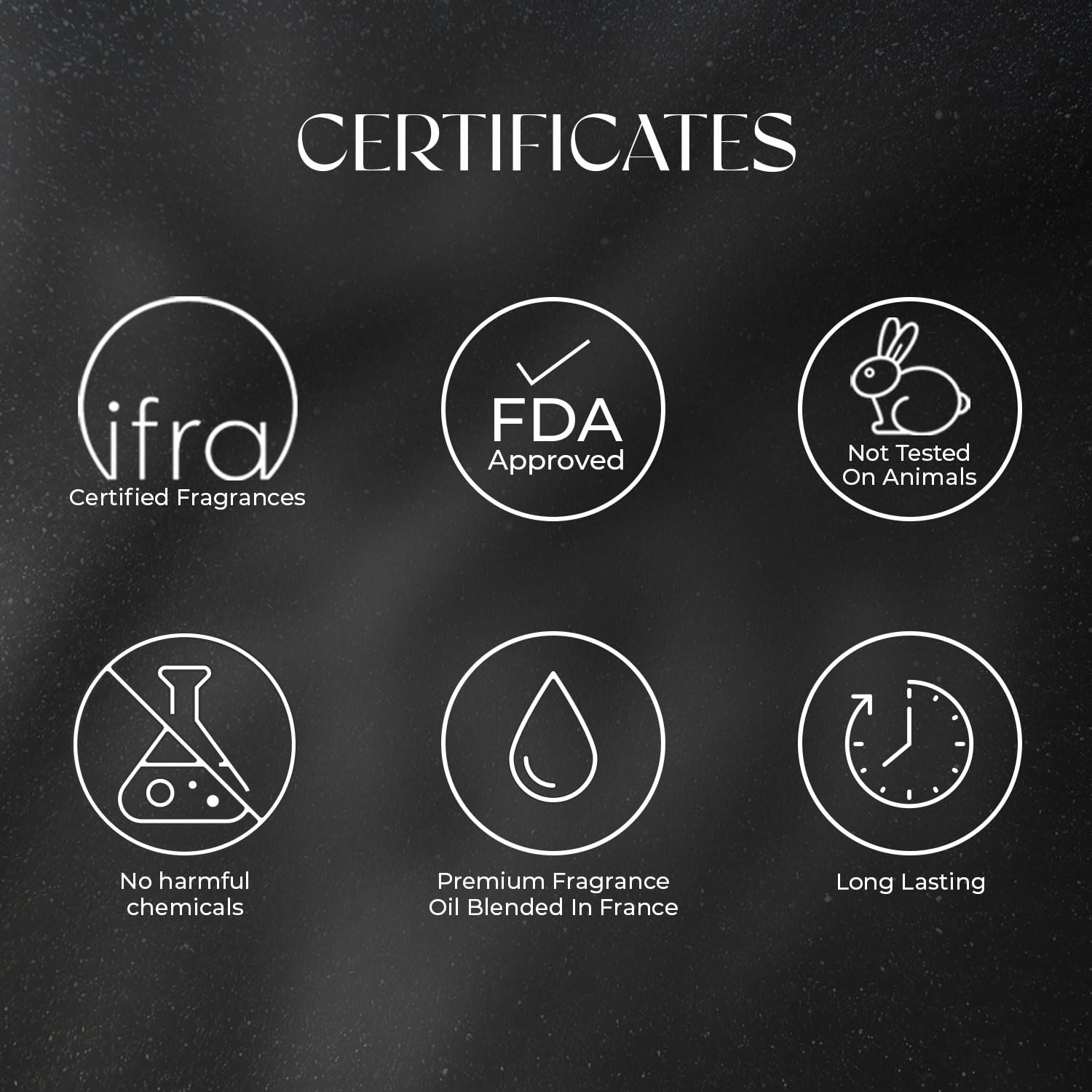 At the Top Notes we have Orange & Bergamot for crisp aroma, at the Middle Notes Tuberose, Iris & Ambrette for rich & heady aroma, and at the Base Notes we have different Musk, Cedarwood & Vanilla for sensual & sweet aroma.