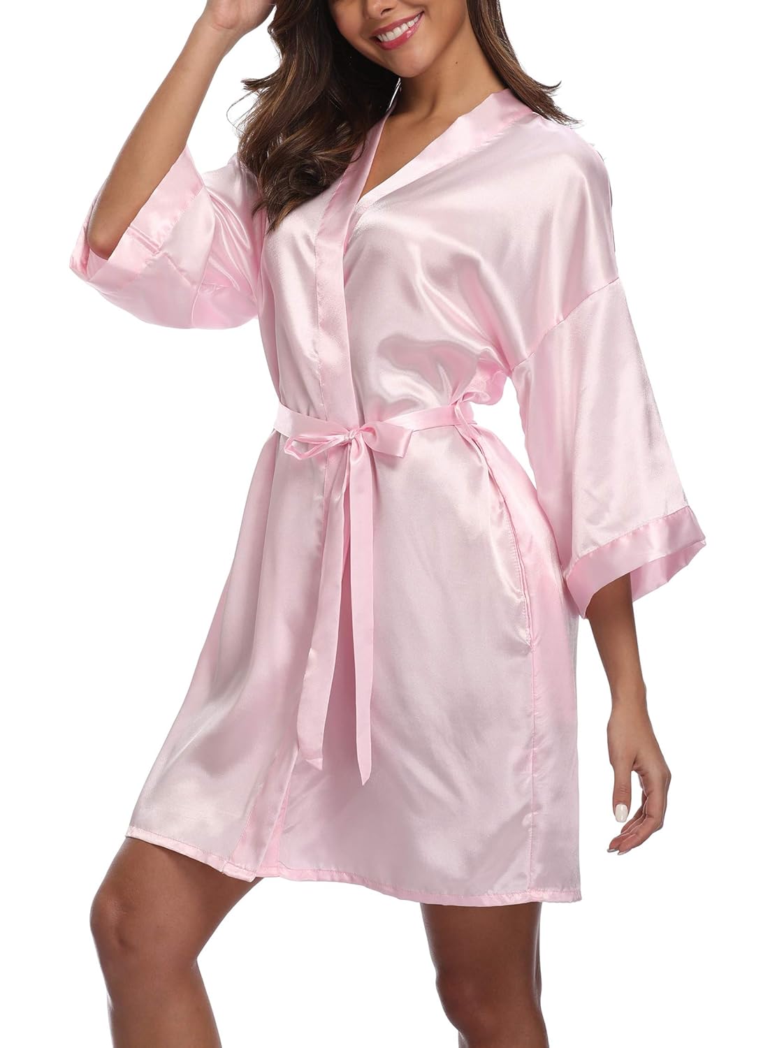Old Times Women’s Silk Satin Bride Bridesmaid Short Bridal Robe Kimono Wedding Nightgown