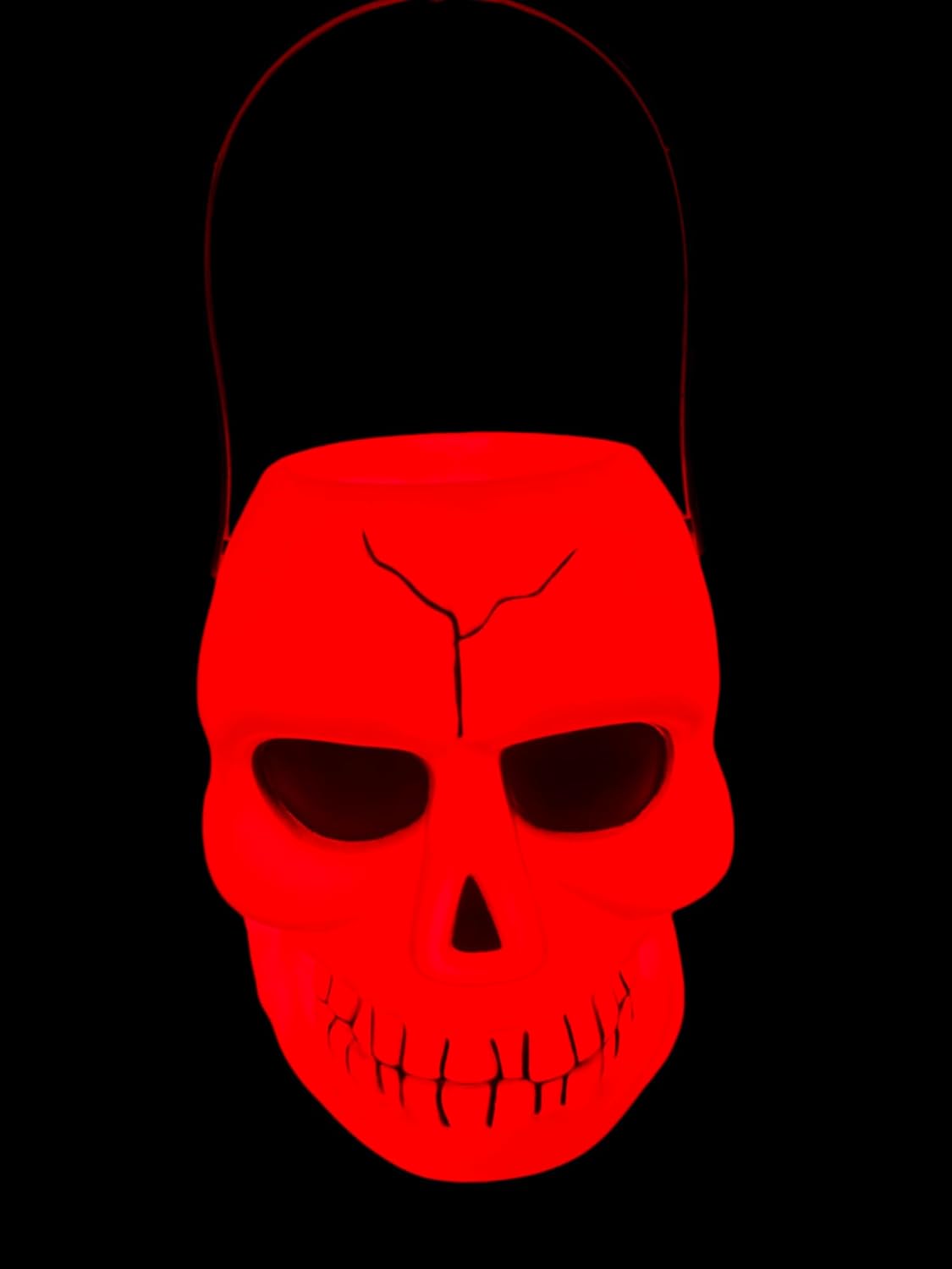 Light Up Halloween skull Pumpkin Bucket – Jack O Lantern w/Glow in The Dark Handles & 1 LED Lights