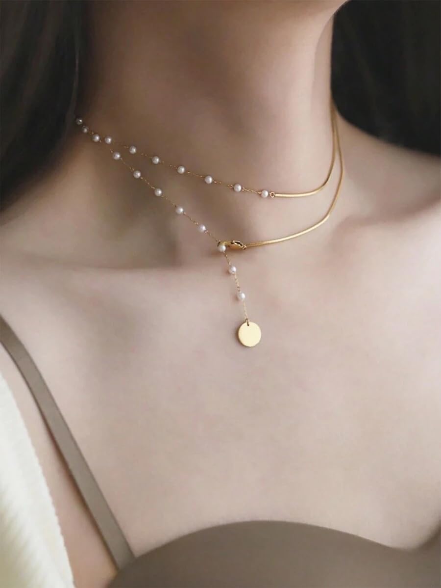 Multilayer Beaded Chain Necklace for Women – Elegant Layers of Style Introducing our Multilayer Beaded Chain Necklace for Women, a captivating piece that combines sophistication with contemporary charm. This exquisite 18k gold plated necklace features multiple delicate chains adorned with beads and a stunning coin drop pendant. Perfect as a birthday gift for your girlfriend, a special present for your sister, or a thoughtful gift for any woman in your life, this necklace is a versatile addition to any jewelry collection. Key Features: Elegant Design Multilayered Chains: The necklace showcases multiple delicate chains adorned with small beads, creating a layered and textured look that adds depth and dimension to your outfit. Stunning Coin Drop Pendant: The centerpiece of the necklace is a beautiful coin drop pendant, accented with intricate details that catch the light and enhance its elegance. Versatile Styling: Ideal for both casual and formal occasions, this necklace effortlessly elevates any ensemble with its sophisticated design. Premium 18K Gold Plating Luxurious Finish: Crafted with high-quality materials and plated with 18k gold, this necklace offers a radiant and durable shine that enhances its overall beauty. Hypoallergenic: Made with skin-friendly materials, this necklace is ideal for those with sensitive skin, ensuring both comfort and elegance. Perfect for Any Occasion Ideal Gift for Women: Whether it’s for a birthday, anniversary, or any special occasion, this necklace makes a thoughtful and cherished gift. Adjustable Chain: The necklace features an adjustable chain length, allowing for a customized fit and ensuring versatility in styling.