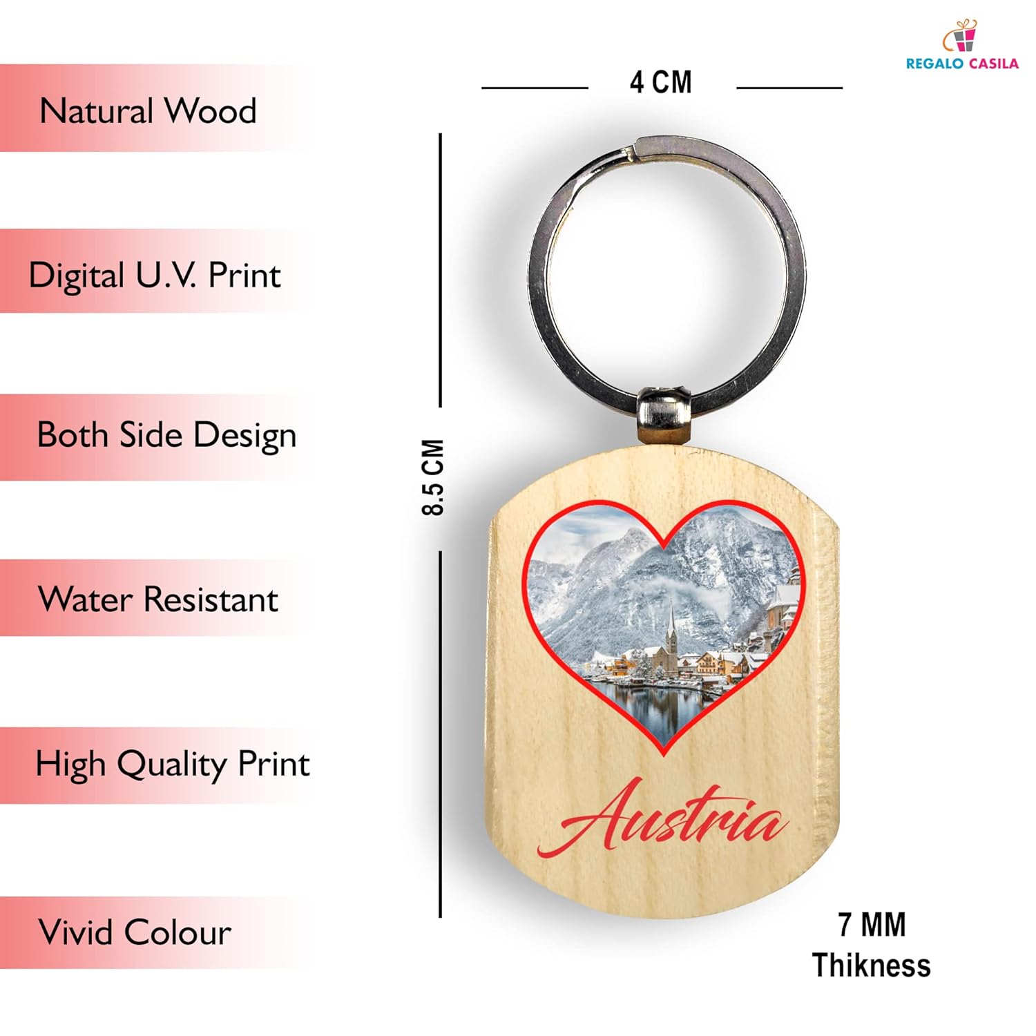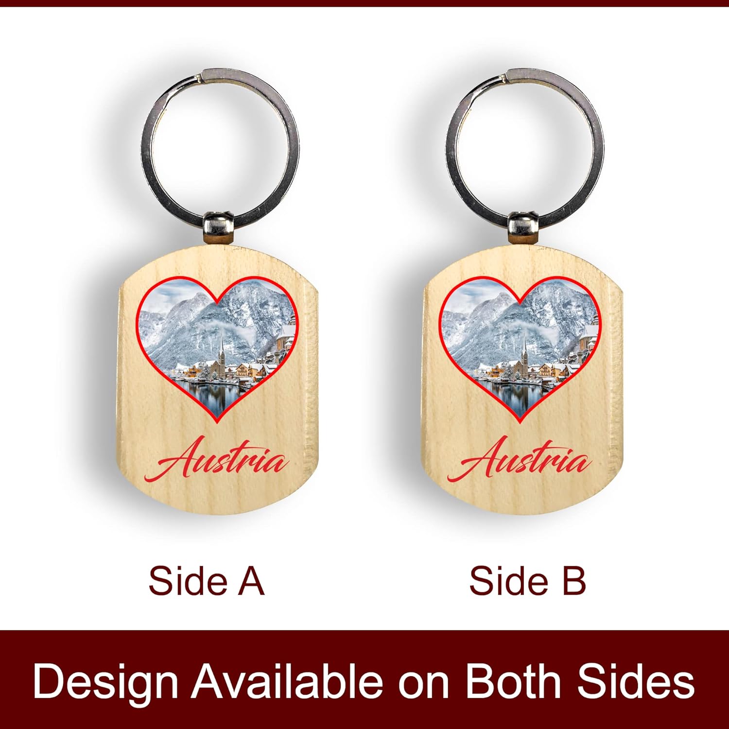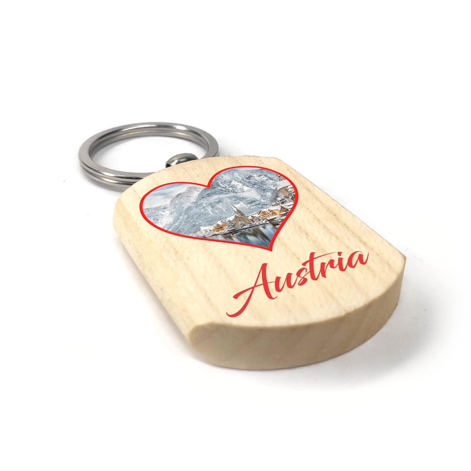 Regalocasila Natural Wooden Souvenir Tourism Austria Keyring With Beautiful Eye Catching Mountain Print