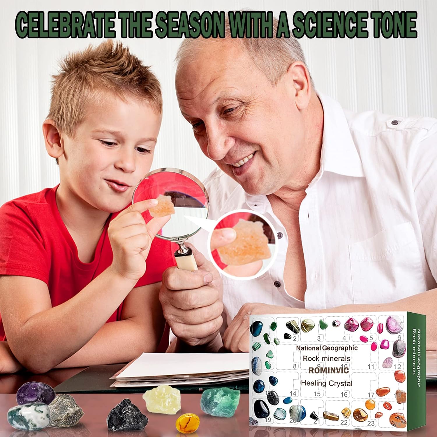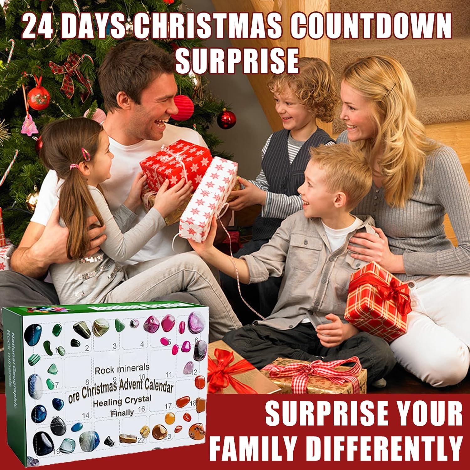Rocks, Fossils and Minerals Kit, Christmas 24 Countdown Ore Gift Box, 2024 New Year Crystal Advent Calendar Gifts for Kids and Adults, Countdown Calendar Healing Crystal Stone Advent Calendar, 24 Day Christmas Ore Gift Set for Christmas Home Garden Decor, Surprise Gifts box.