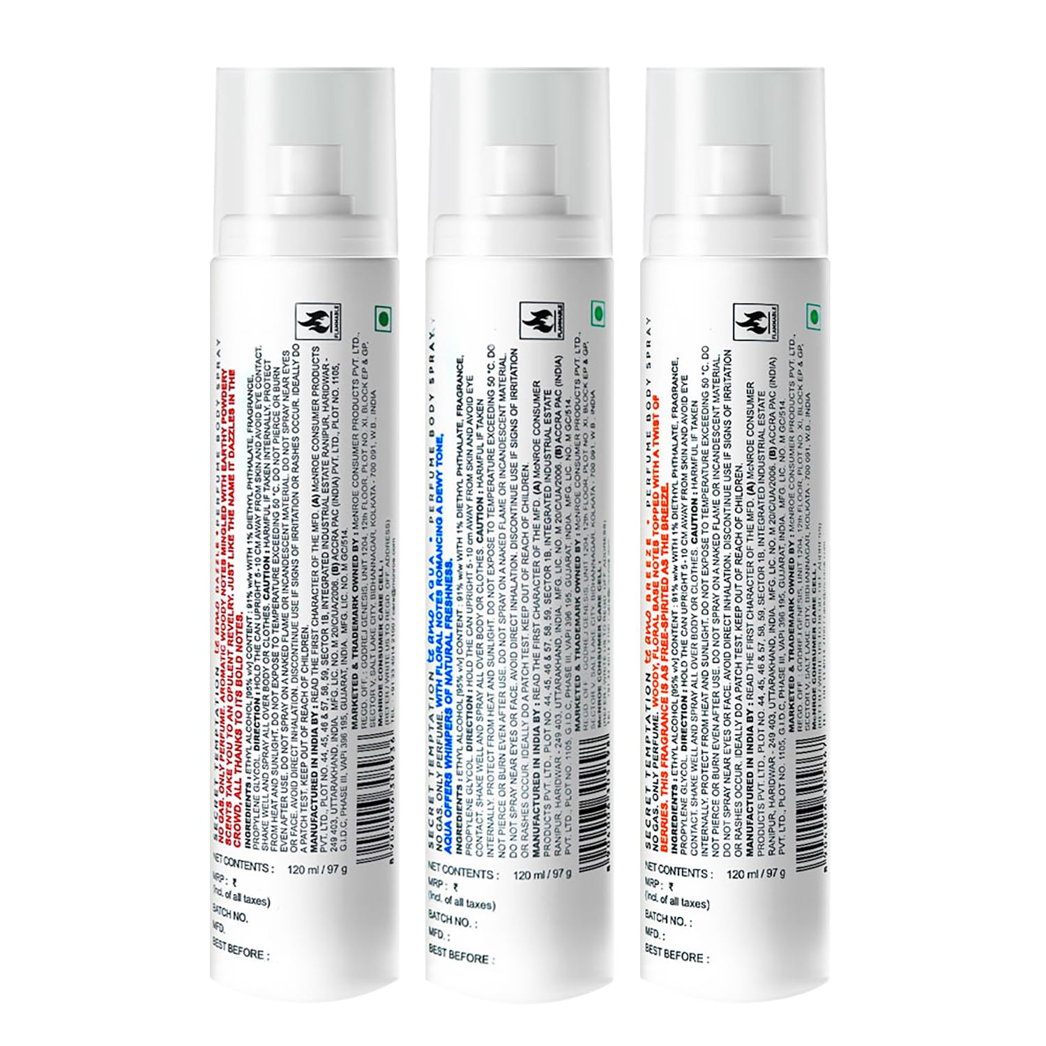 Write a secret love story with you and your dreams with Te Amo no gas body spray for women. This enticing body sprays for women are designed to embrace every free-spirited, confident and bold woman who is bold and passionate and express through the command of their personality. This no gas formula enhanced your long-lasting appeal and keeps you fresh and energetic throughout the day. A great fit from a party wear to a special occasion or for an office look, Te Amo complete body spray range is here to excite you with its floral, fruity and woody fragrance. Buy this women’s perfume for an everyday go-to look and leave your lasting impression everywhere.