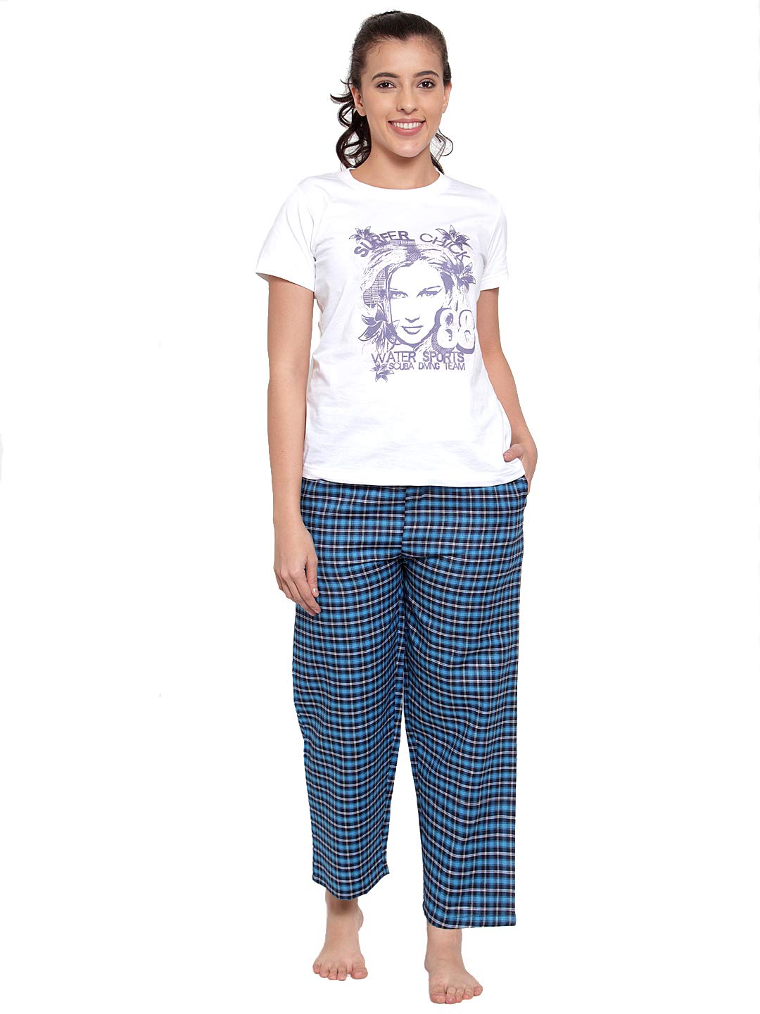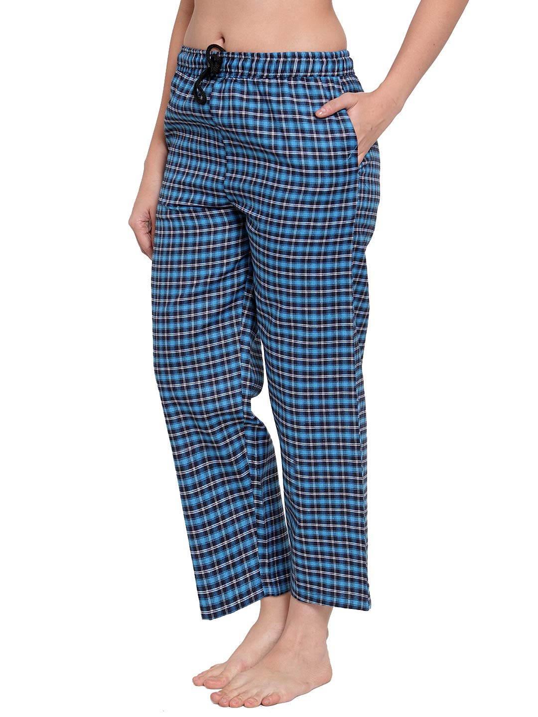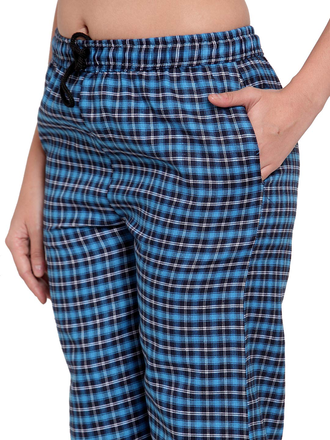 Blue checked mid-rise lounge pants, has an elasticated waistband with a drawstring fastening, and two pockets