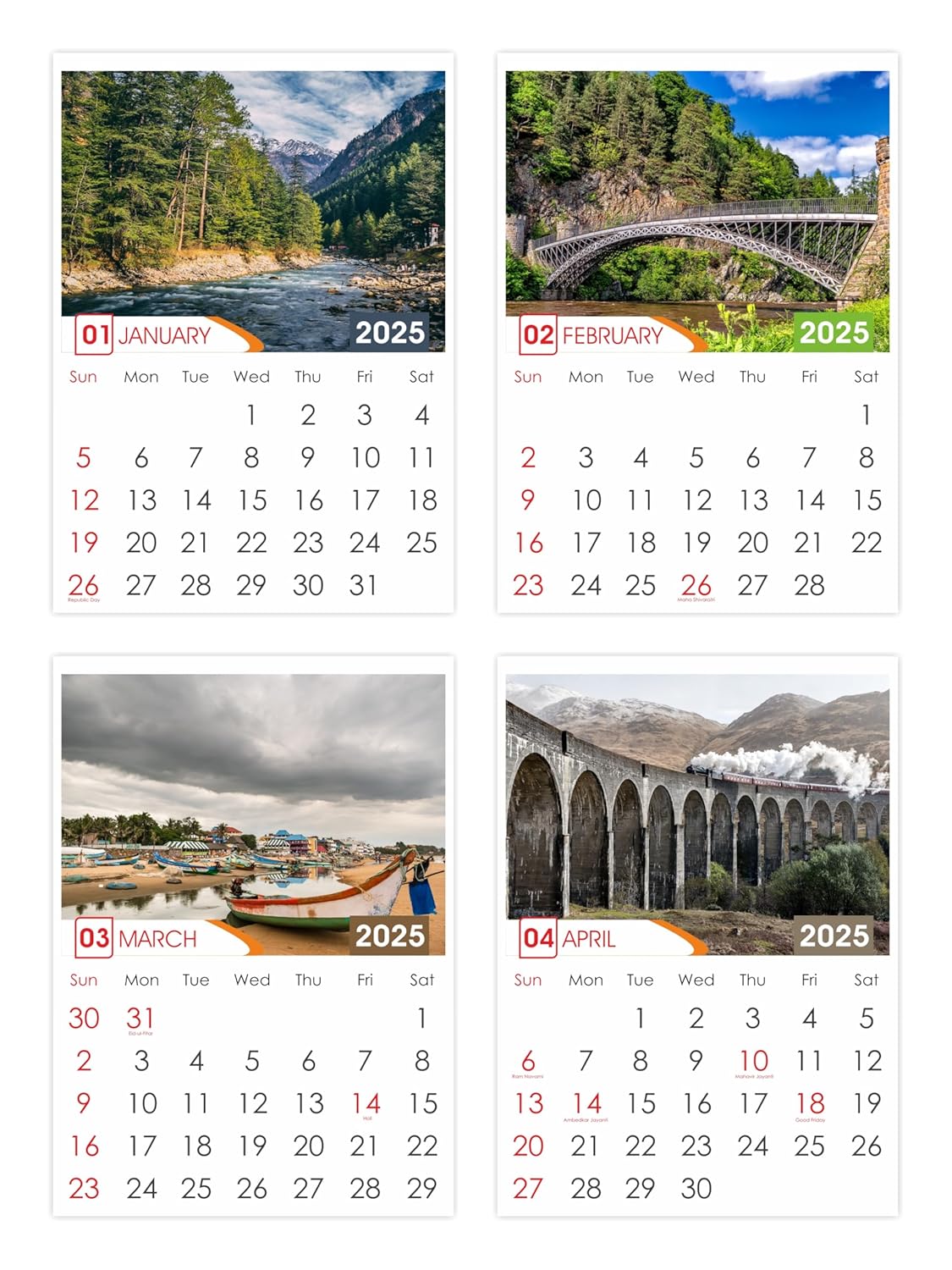 Shashiv 12 Sheets Wall Calendar 2025 Suitable For All Generations, Home Environment, Office And For Gifting Purpose In Size 12.5″ x 17.75″