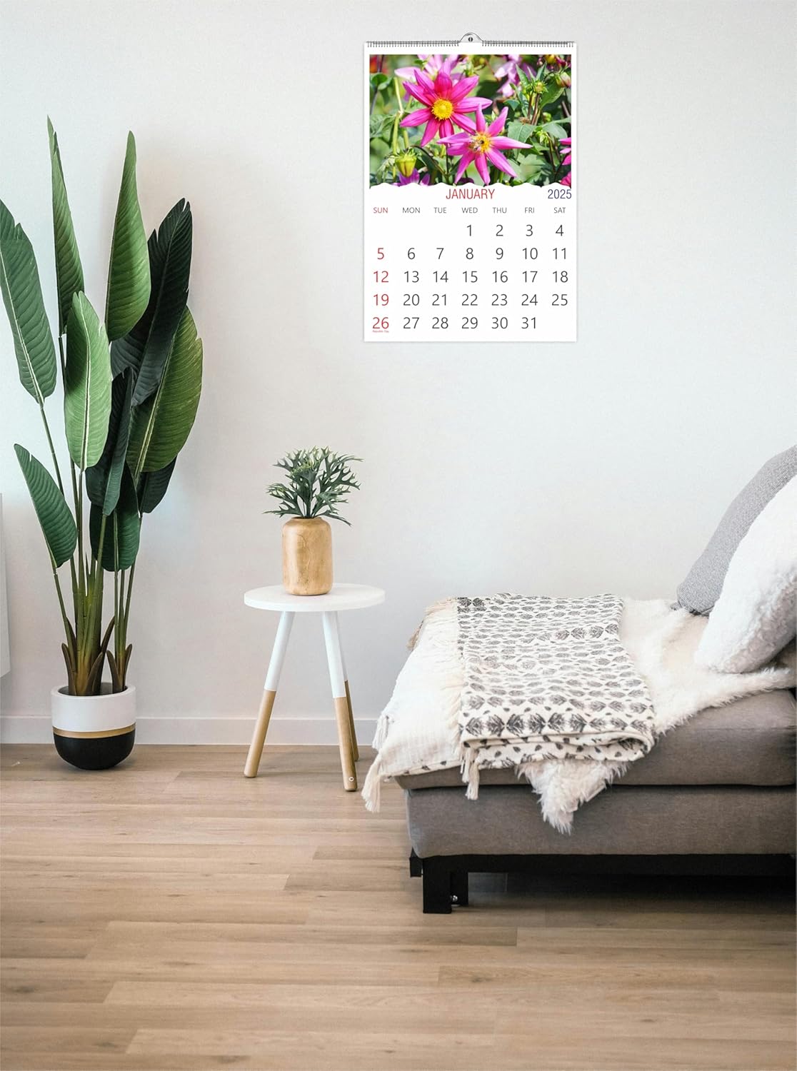 Easily readable dates in 64 font size with specified holidays enhance the importance of the calendars on the walls.