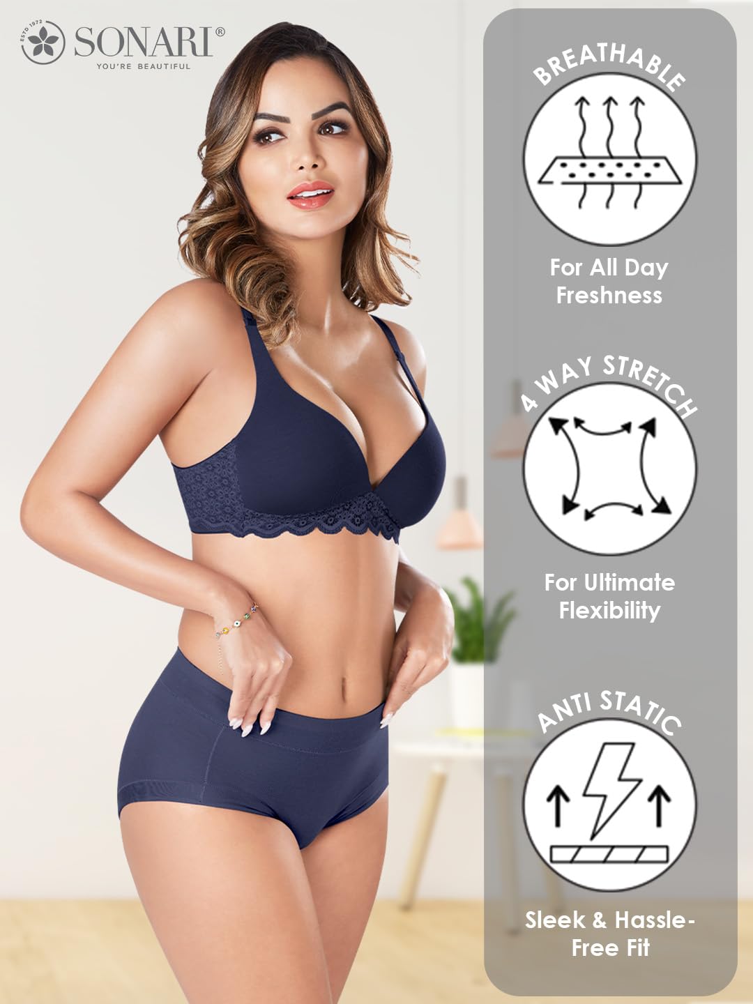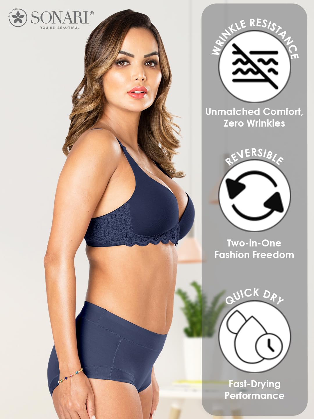 Every product from Sonari is a reflection of the simplicity and the inner radiance of women. Sonari brings you a wide collection of contemporary, yet timeless designs with a promise of great quality. This simplistic range is designed in petal soft cups to give you the everyday comfort you need. Double layered, cut and sew cups. 3/4th Coverage. Wire free comfort. Floral design all over. Bow detail at the peplum. Thread detail on shoulder straps. Shoulder straps with rings and sliders for adjustment. 2 row 3 column hook and eye closure. Ideal to be worn with saree or kurta.