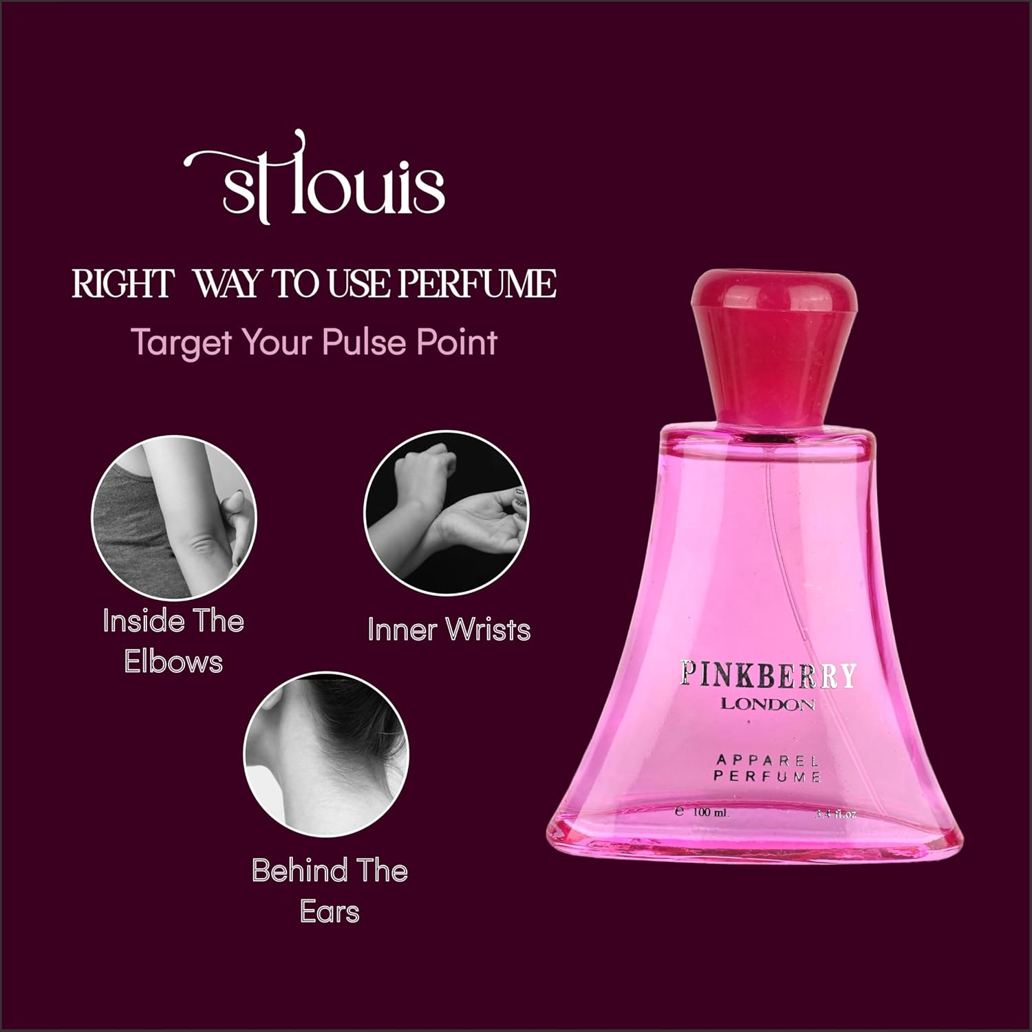 Pink Berry: Escape the ordinary and embrace a touch of British flair with St. Louis Pink Berry London Apparel Perfume. This captivating fragrance is a delightful blend of pink berries, evoking a sense of sophisticated charm.