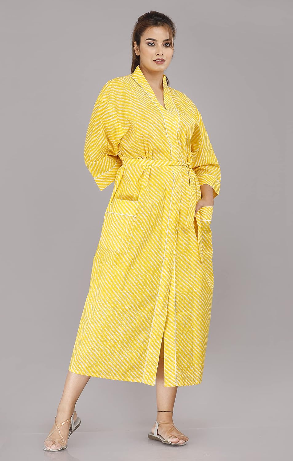 Elegant long robe for cool days. Warm and soft clothes. You can enjoy the relaxing and comfortable time at home. Each bathrobe has an adjustable vest belt that helps to securely close the robe from the front. Nice well-made Lightweight & Breathable Nightwear, Home Washable with Exclusive self designs and Durable materials, Perfect wear for Casual wear which provides you comfort, feels light and breezy. Breathable, free-moving material which adjusts according to your waist and creates an astoundingly easy-going experience. Made with the sense of the latest fashion trends.