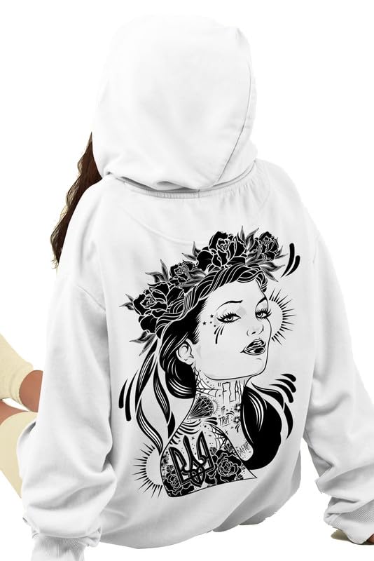 VLAM Spooky Girl Design Graphic Printed Oversized Fit Unisex Hoodie | Trendy Back Print Anime Hoodie