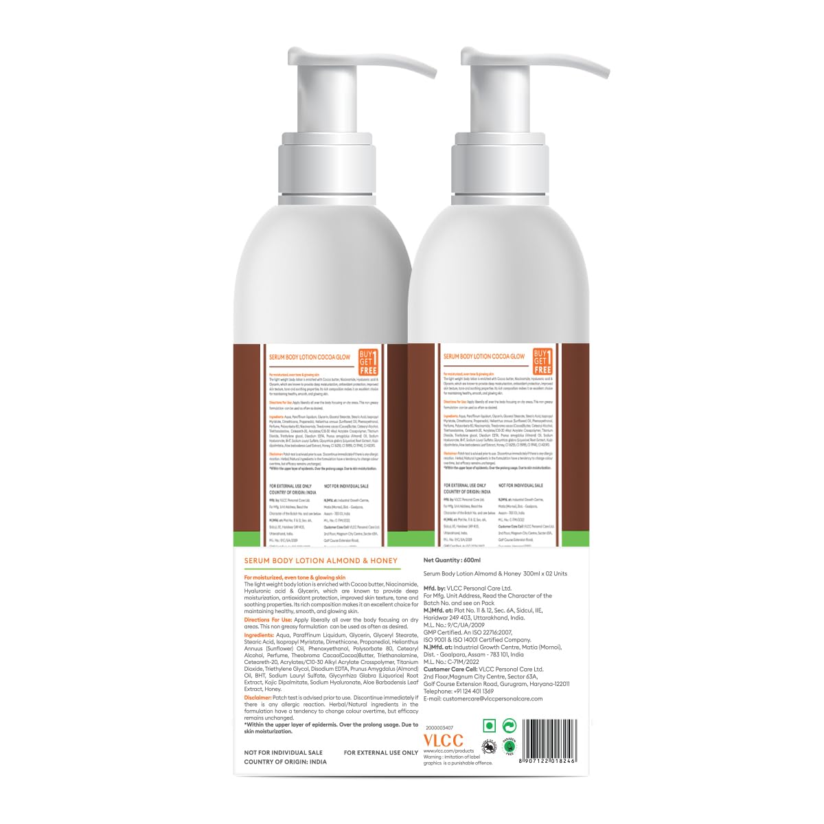 Generic Name : VLCC Cocoa Glow Deep Hydrating Serum Body Lotion with Hyaluronic Acid – 300ml+300ml Pack Buy 1 Get 1