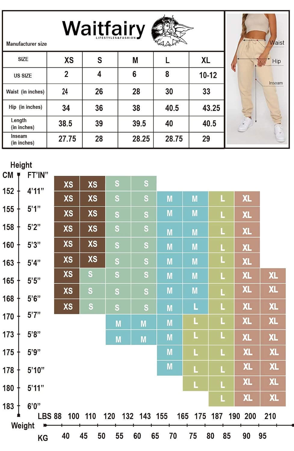 Waitfairy Womens High Waisted Sweatpants Drawstring Workout Jogger Pants Pajama Bottom