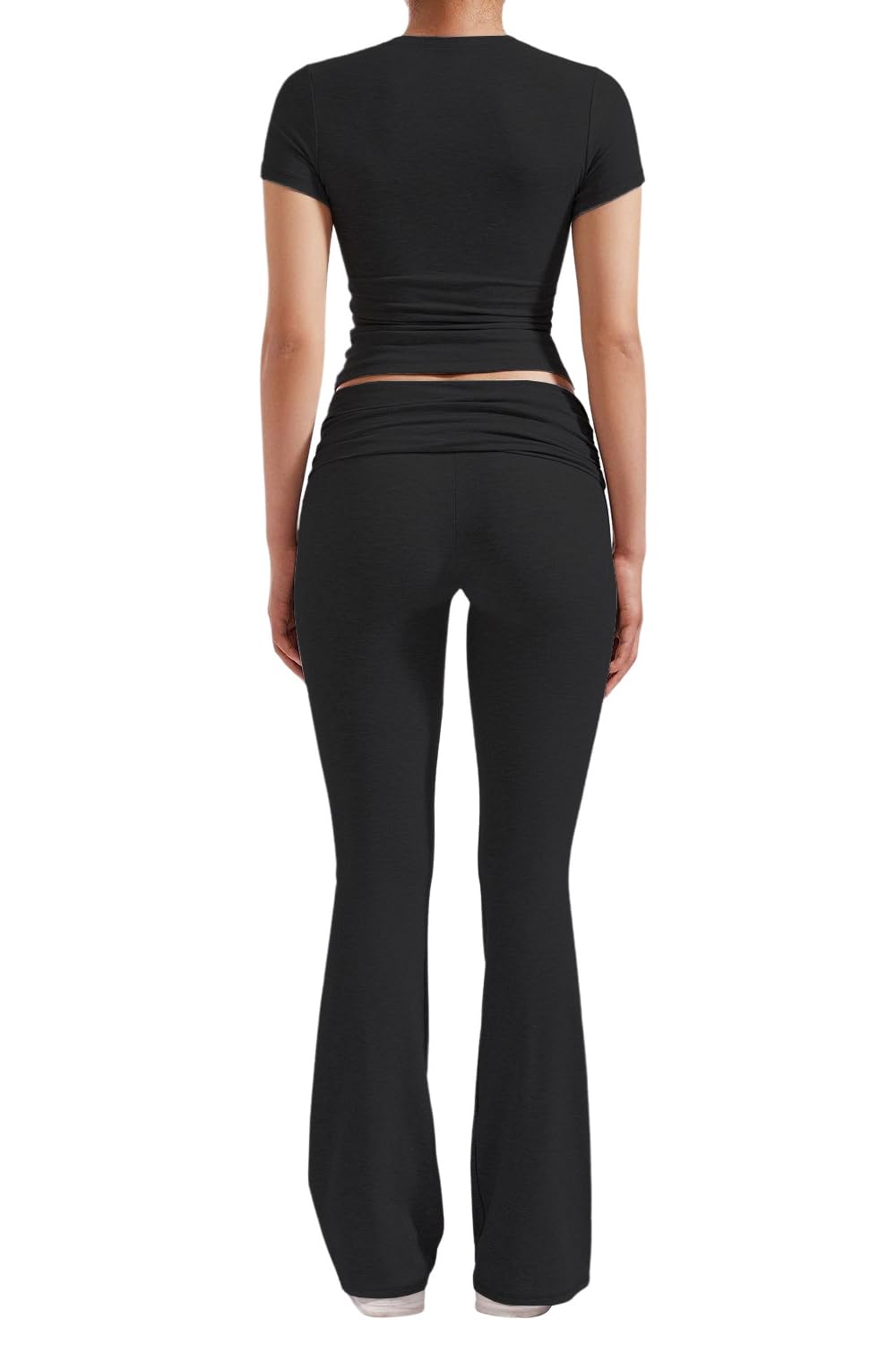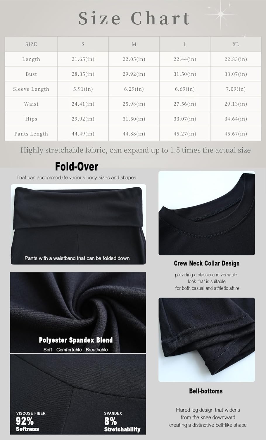 Product Title: “Women’s Two-Piece Lounge Outfits with Slim Short Sleeve Tops and Low Rise Flare Leggings Sets – Versatile Yoga Fall Sweatsuit”