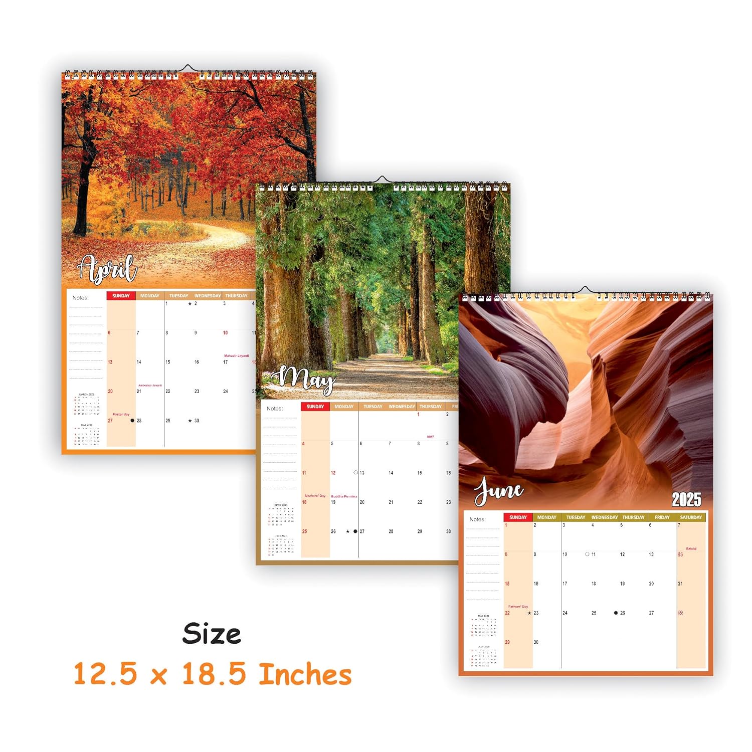 2025 New Year Wall Calendar: 12-month coverage from January to December 2025 with large writing space. Size : 12.5 x 18.5